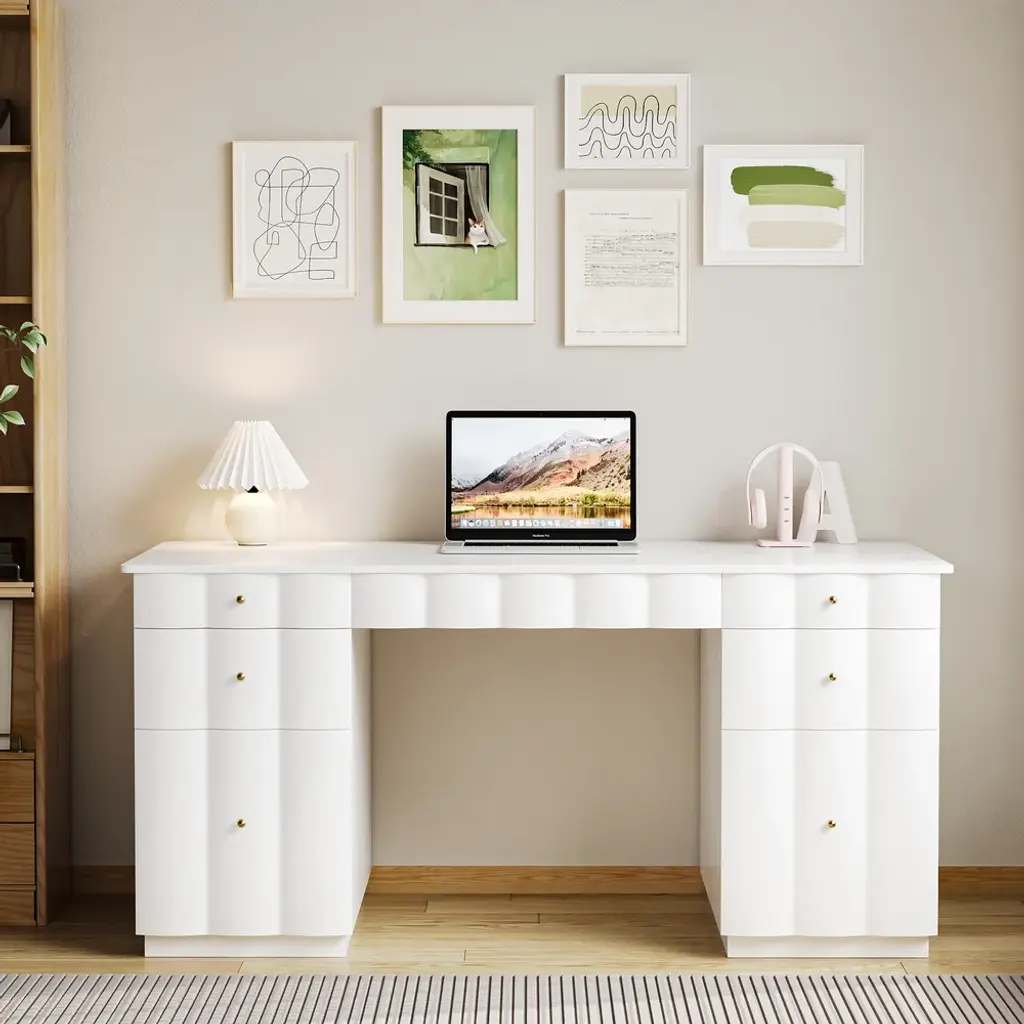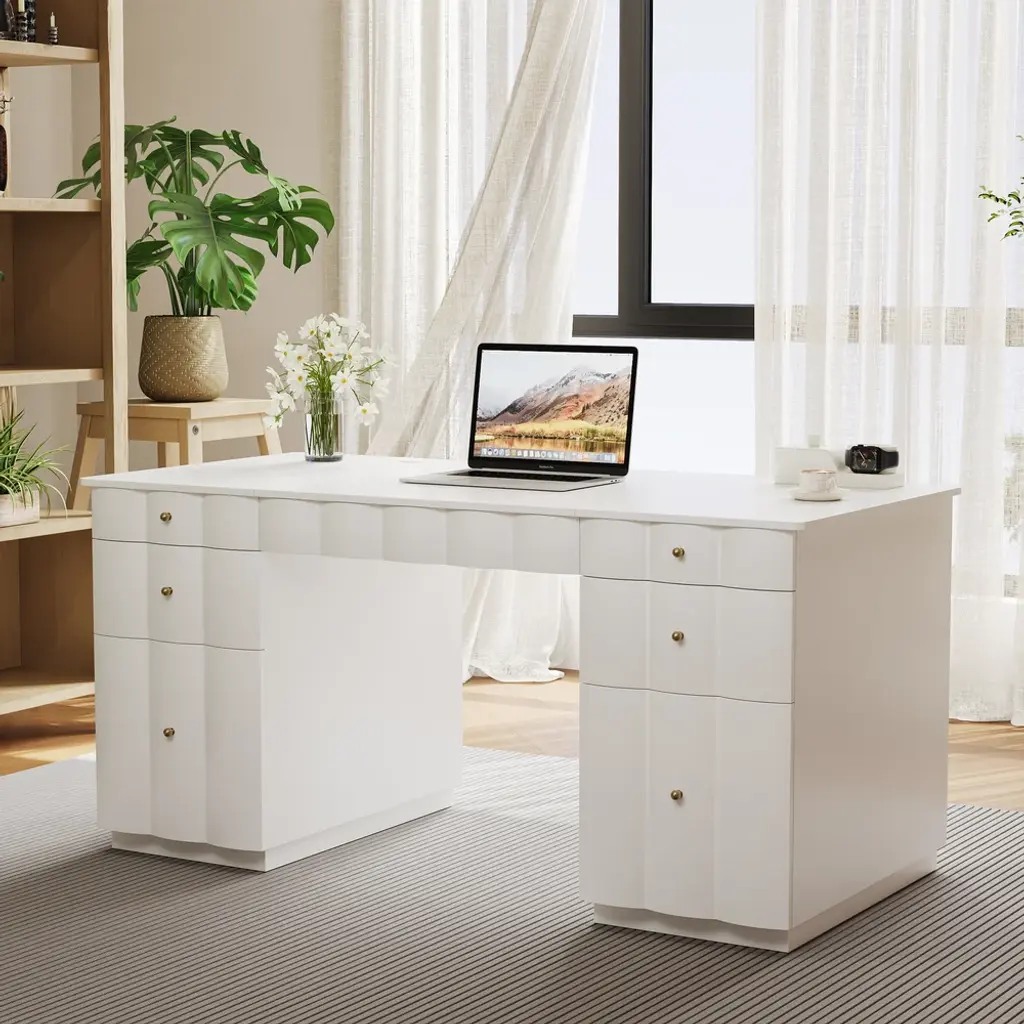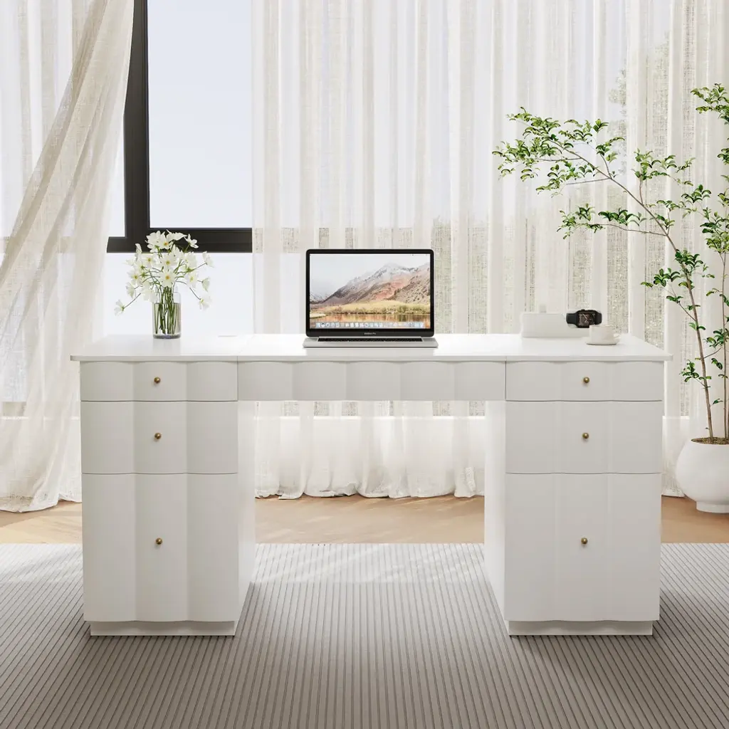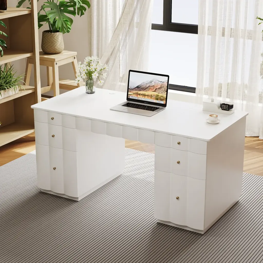 Transform your workspace with this French-style adjustable desk. Featuring a manual lift mechanism for sit-stand flexibility, 6 organized drawers, and built-in wireless charging with ports. Its engineered wood construction and integrated cable management ensure durability and clutter-free productivity.