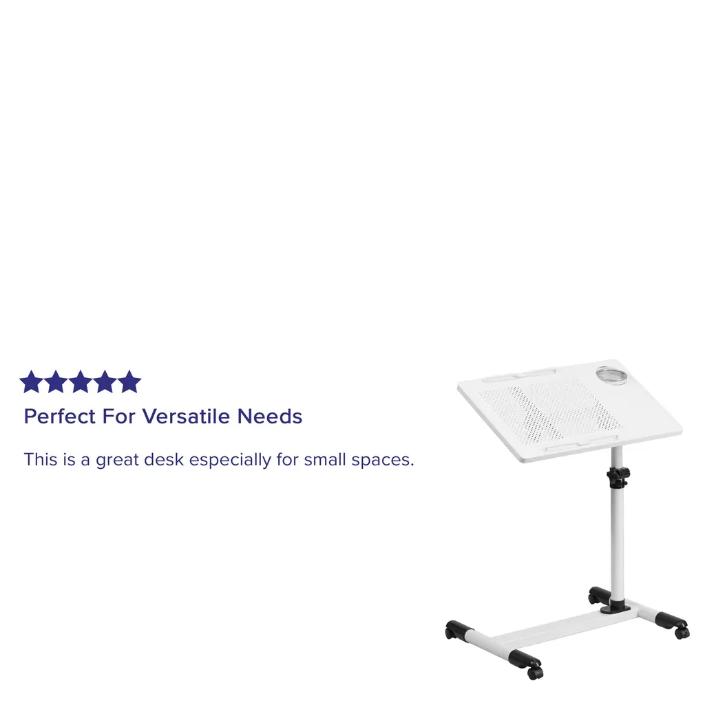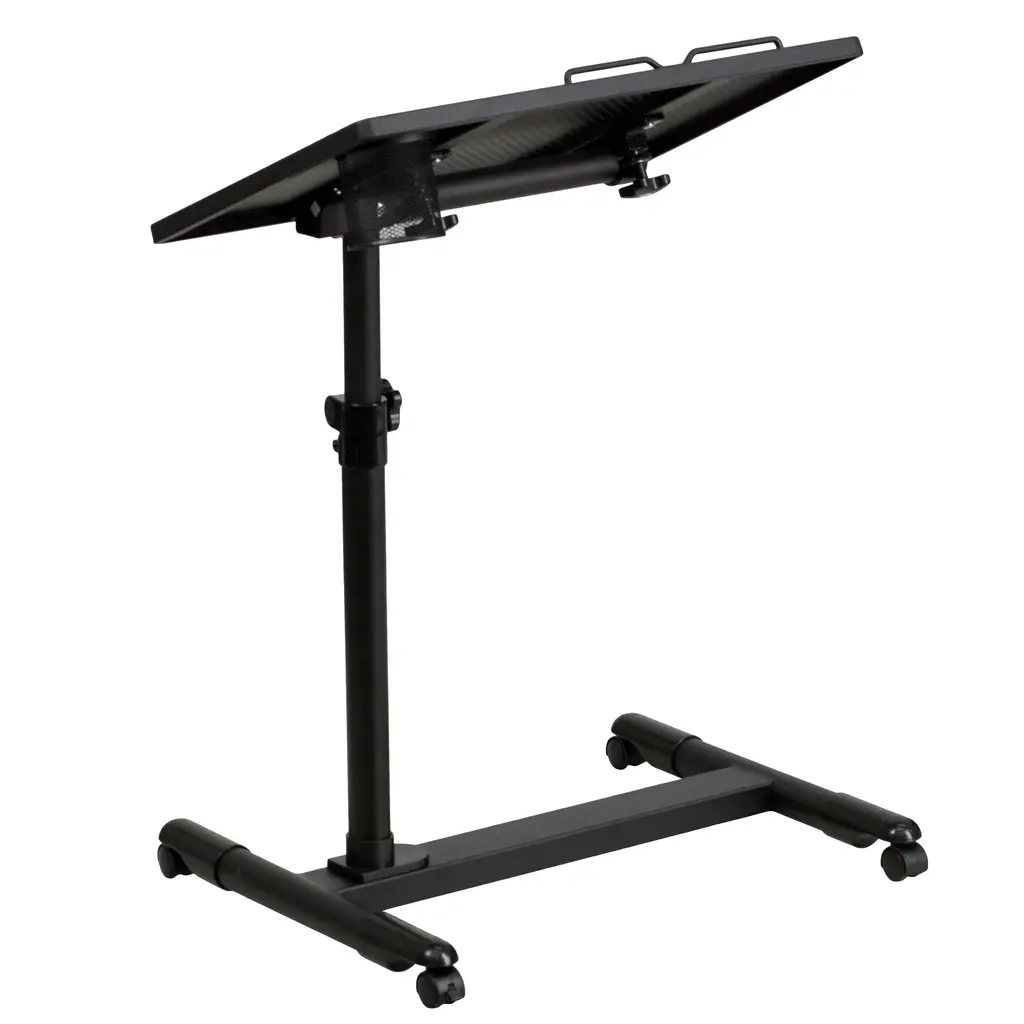 Get moving...or stay put on this mobile computer desk with adjusting capabilities. No need to purchase a cooling pad, the perforated surface allows your laptop to cool down with proper air circulation. Top swivels a full 360 degrees, tilts and has a top and bottom lip to prevent papers from falling. The height adjustable frame allow user to adjust the table to their height preference. Keep this piece looking great with a water-based cleaner. This computer stand will serve as a great option for arts and crafts.