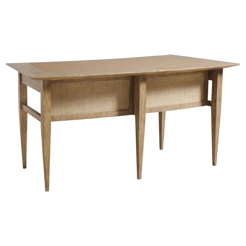 Aegis Coastal Beach Brown Oak Wood Woven Cane Bronze Hardware Office Desk