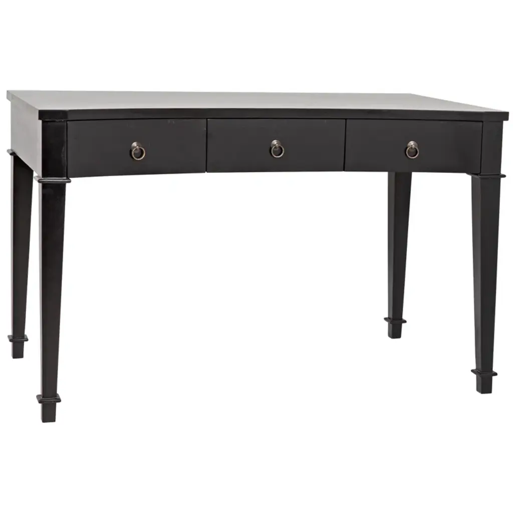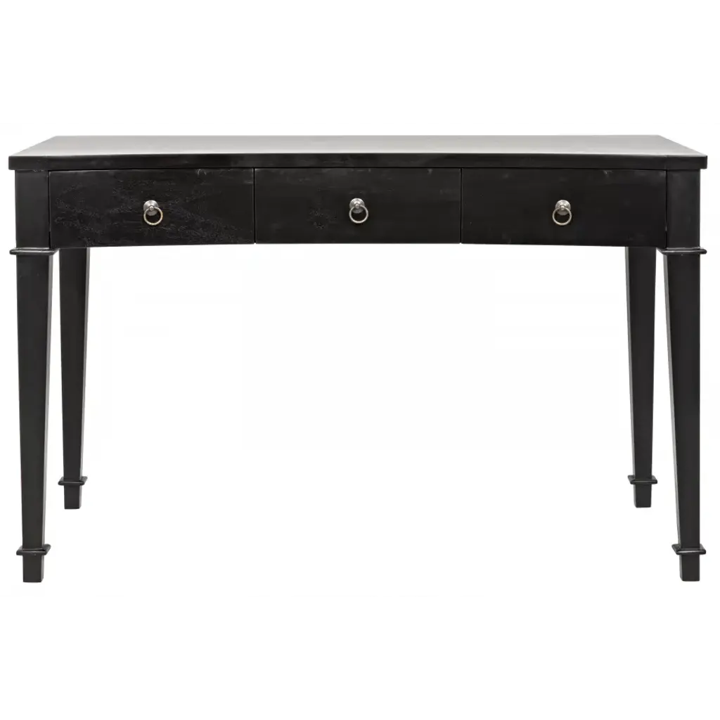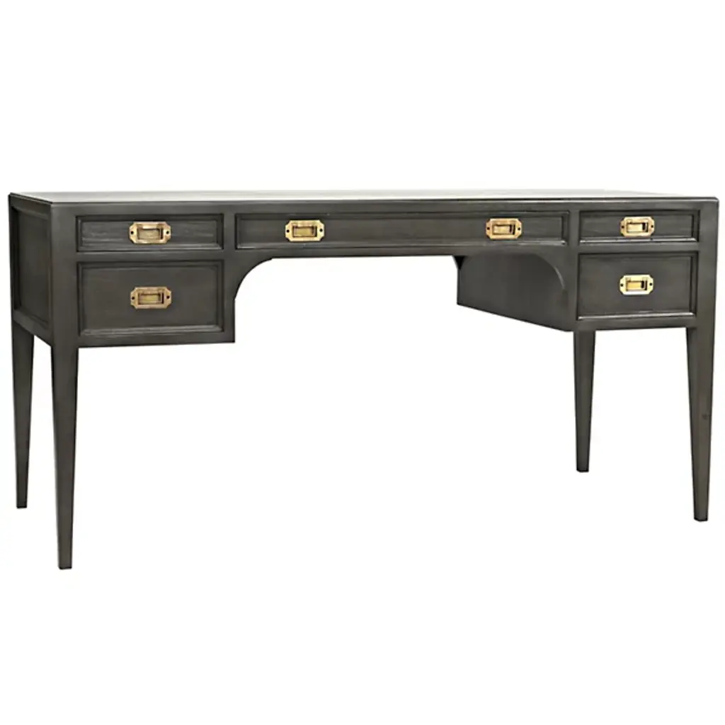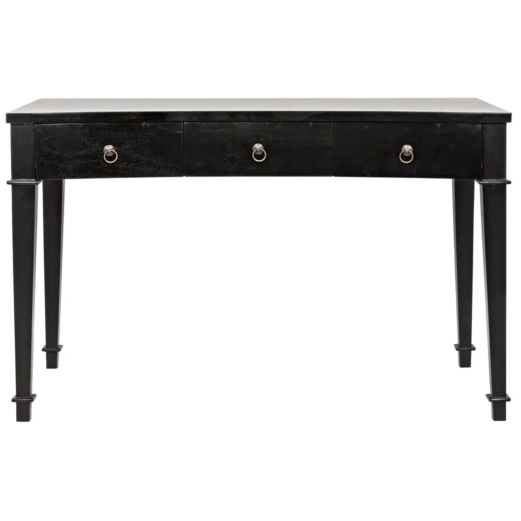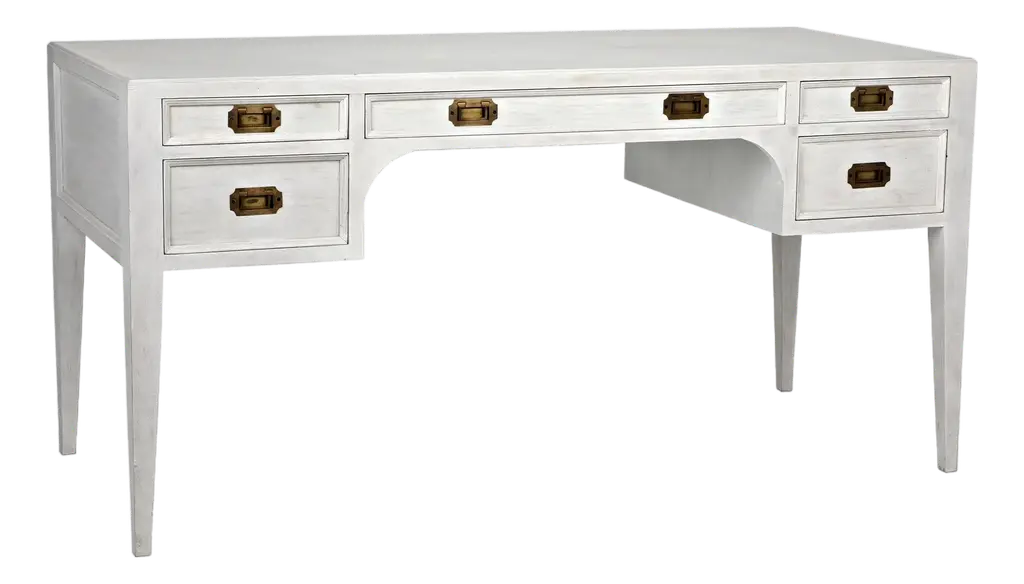 The Africa Desk from Noir reimagines classic colonial design in solid mahogany, bringing timeless elegance to any space. The rich, natural tones of the wood are complemented by bright brass hardware, adding a touch of sophistication and opulence to its otherwise simple and refined aesthetic. The combination of high-quality craftsmanship and luxurious detailing makes this piece a perfect blend of traditional charm and modern style, ideal for elevating any room's décor with understated elegance.
