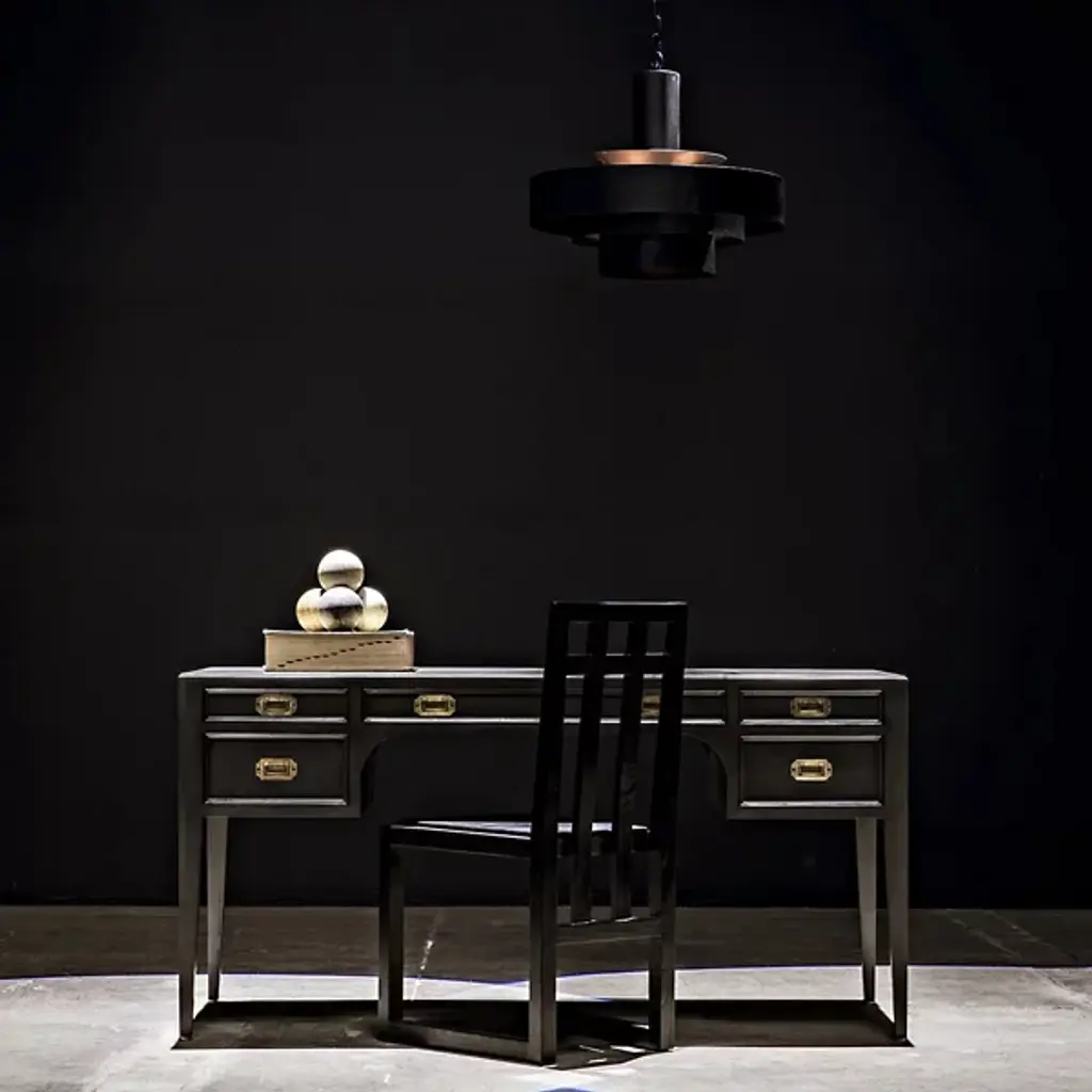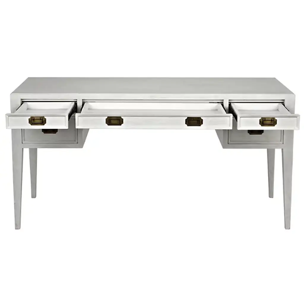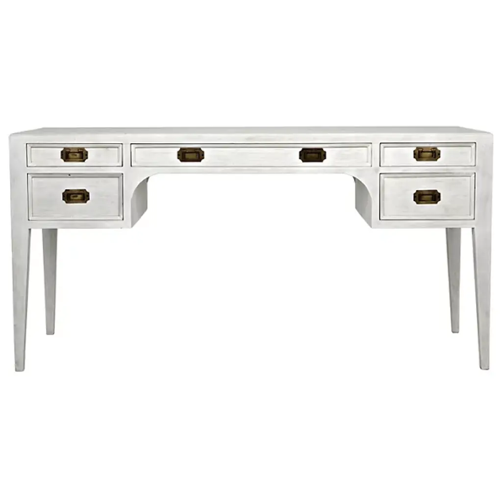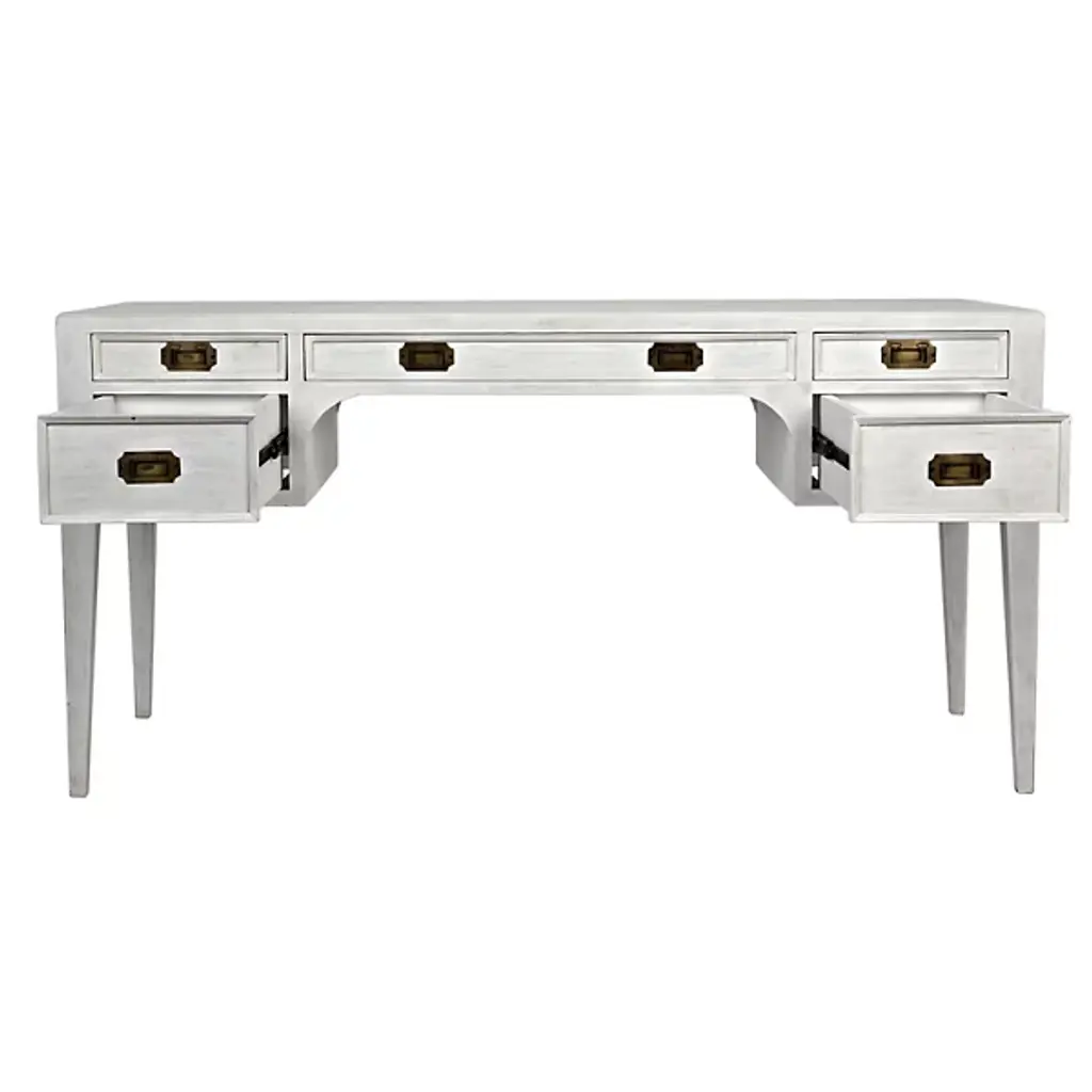 The Africa Desk from Noir reimagines classic colonial design in solid mahogany, bringing timeless elegance to any space. The rich, natural tones of the wood are complemented by bright brass hardware, adding a touch of sophistication and opulence to its otherwise simple and refined aesthetic. The combination of high-quality craftsmanship and luxurious detailing makes this piece a perfect blend of traditional charm and modern style, ideal for elevating any room's décor with understated elegance.