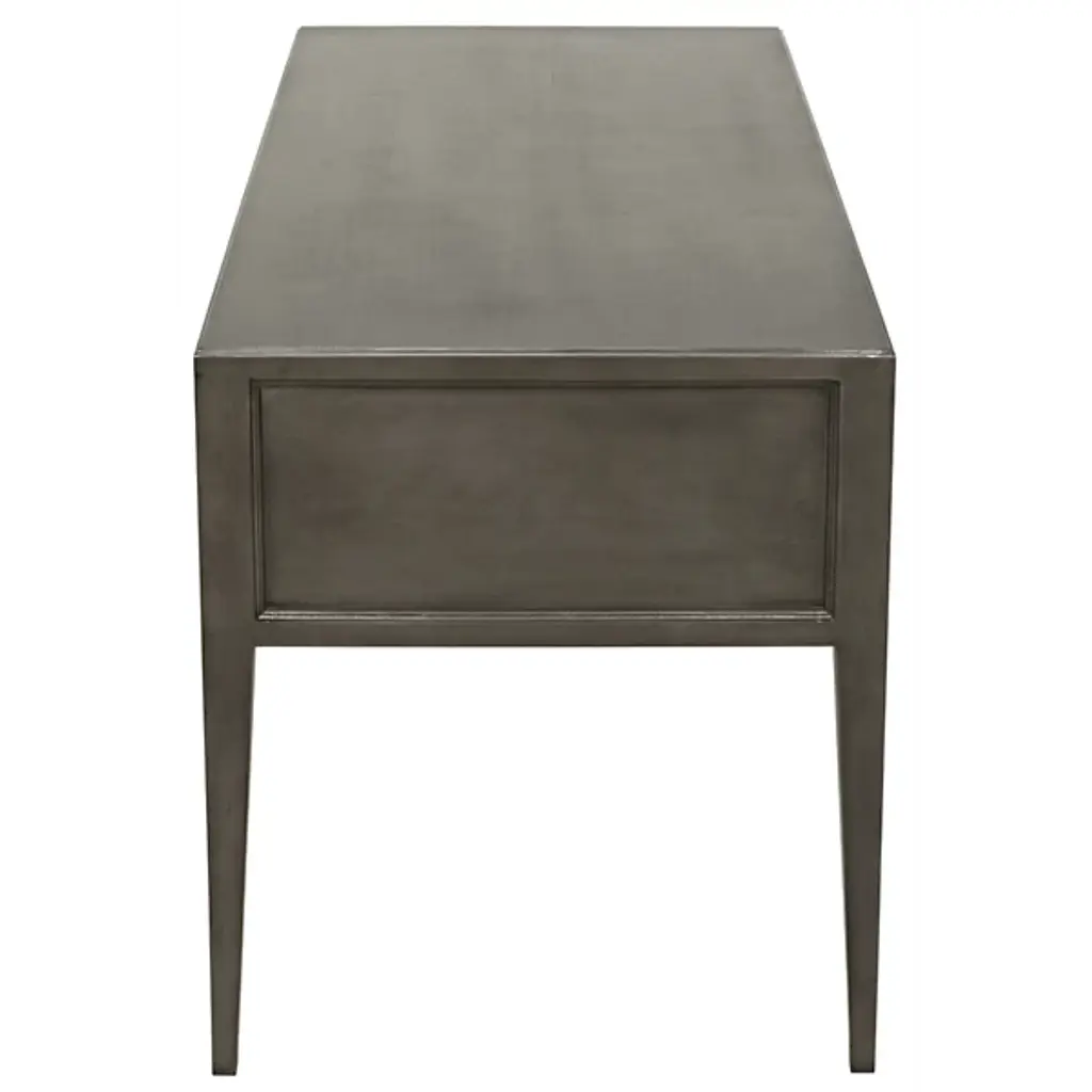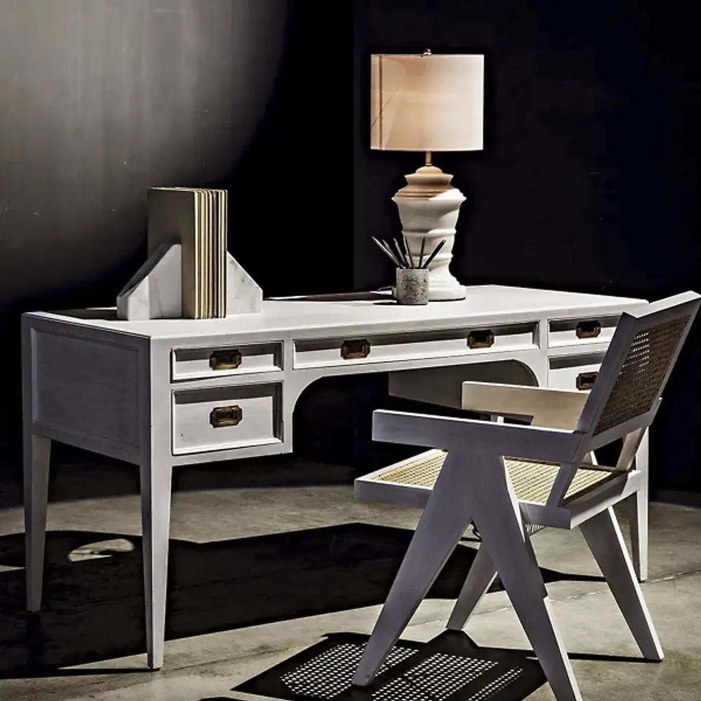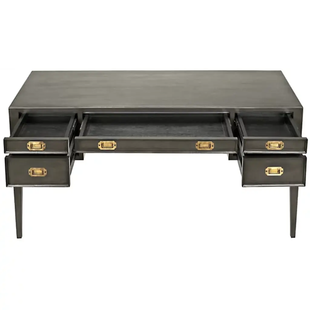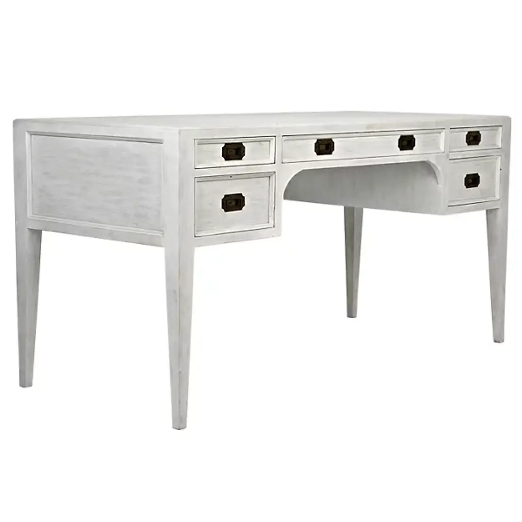 The Africa Desk from Noir reimagines classic colonial design in solid mahogany, bringing timeless elegance to any space. The rich, natural tones of the wood are complemented by bright brass hardware, adding a touch of sophistication and opulence to its otherwise simple and refined aesthetic. The combination of high-quality craftsmanship and luxurious detailing makes this piece a perfect blend of traditional charm and modern style, ideal for elevating any room's décor with understated elegance.