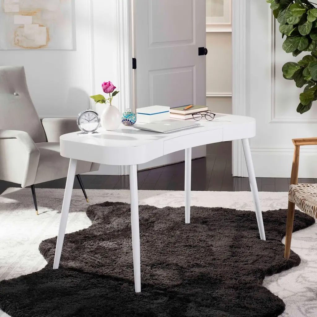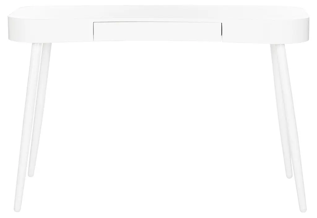 A chic addition to any space, this midcentury-inspired desk is designed with soft curves, splayed legs, and a crisp white finish. A single drawer adds always-welcome space for stationery and work supplies.