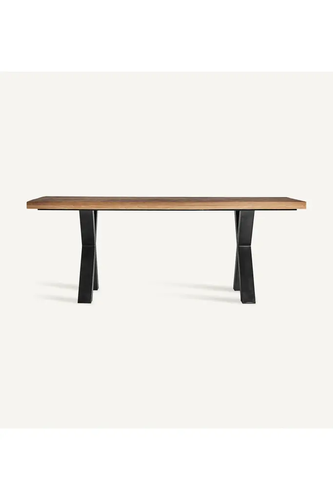 Simple while sculptural, a wide, airy desk of cast aluminum is finished in a distressed bronze. The result: a luxe twist on industrial decor.