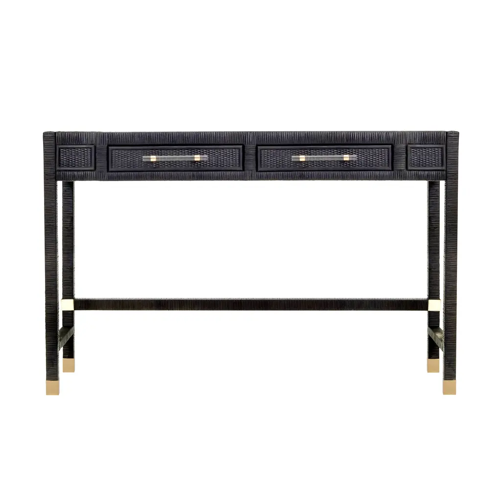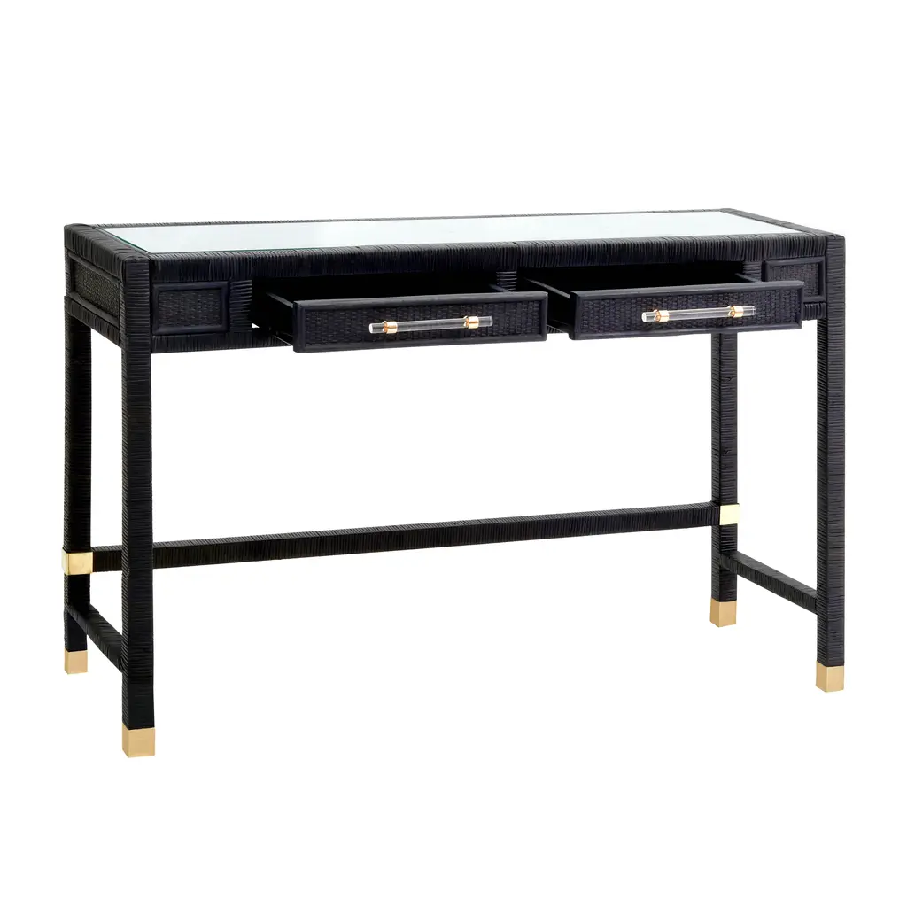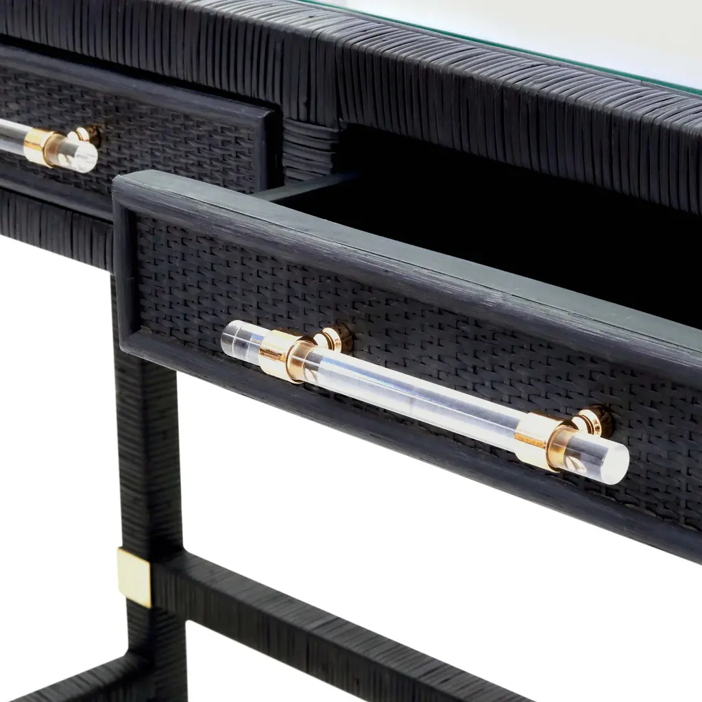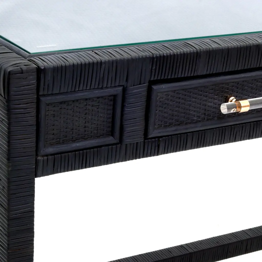 The Amara Rattan Desk is a beautiful and functional piece of furniture that is designed to provide a stylish workspace in any home or office. The desk's spacious glass tabletop provides ample room for a laptop, books, or other work essentials. Stash your stuff in the soft-close drawers to keep your space looking immaculate. Available in a warm natural color or a bold charcoal, the Amara adds a modern touch and texture to any space.