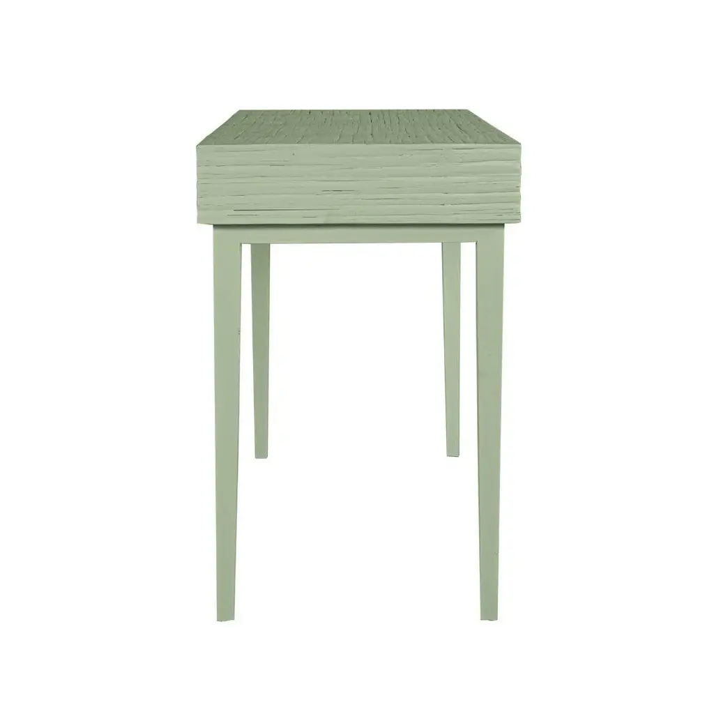 Elevate your workday with a modern coastal flair by incorporating our Andros desk, into your workspace. Constructed with a stunning Crushed Bamboo desktop and slim Mahogany legs that provide both stability and style, this desk is sure to enhance the overall ambiance of your home office. Each drawer is equipped with full extension metal drawer glides and brushed nickel drawer pulls that add a touch of sophistication. Each David Francis desk is hand-finished in the USA and made to order. Please allow time for delivery.
