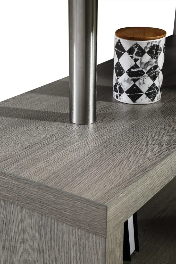 Crafted in a matte grey or matte white finish the Anna modern office desk features a simplistic design that captures the eye. Equipped with a S-design bookcase, this desk is perfect for extra storage & organization. The legs are finished in brushed stainless steel. Available as shown or in a white high gloss with chrome legs.