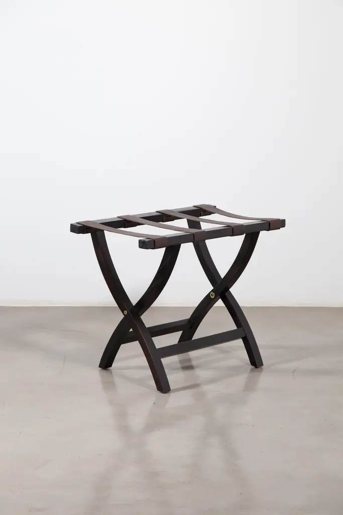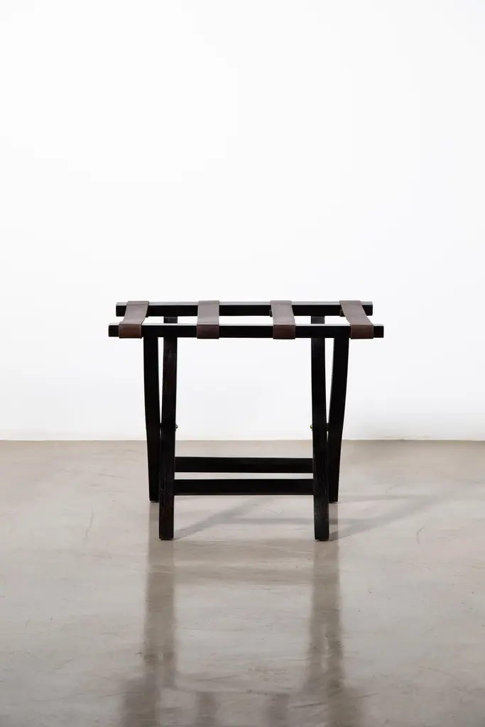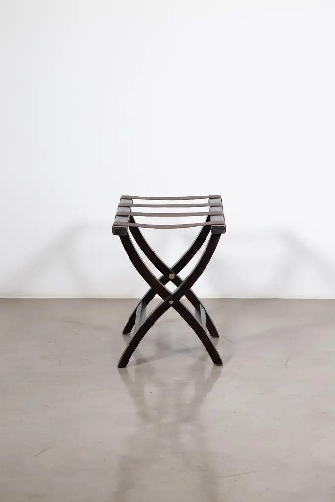 The Valerio Luggage rack features a solid Argentine Rosewood frame and a slung leather seat to support your luggage in style. Available in any finish or material for straps as well as custom sizing.Measurements are: 26" L x 18" W x 21" HOther materials available are Argentine Rosewood, Oak, Walnut, Maple, Cherry, Beech, Elm, Okume Teak, Abruzzo Almond, Abruzzo Black, Abruzzo Cappuccino, Abruzzo Chocolate, Abruzzo Chocolate, Abruzzo Concrete, Abruzzo Graphite, Abruzzo Cream, Abruzzo Mocha, Abruzzo Pepper, Abruzzo Terracotta, Abruzzo White, Abruzzo Bone, Bari Cream, Bari Caramel, Bari Chocolate, Bari Cognac, Bari Copper, Parma Flash, Roma Sable, Piemonte Hazelnut, Ischia Gray, Lipari Celeste, Genova Brown, Napoli Camel, Napoli Seal, Mediterranean Marsala, Lipari Sangria, Lipari Pecan, Parma Black, Napoli Smoke, Napoli Creme, Piemonte Red, Roma Brown, Napoli Teal, Piemonte Navy, Parma Bone, Sardinia Maple, Piemonte Autumn, Sardinia Chestnut, Bologna Tobaco, Campania Amaretto, Campania Brown and Piemonte Brandy.About Costantini DesignCostantini is a furniture design and manufacturing company founded in 2002 by artist and designer William C Stuart. The name Costantini comes from his maternal grandfather, a first generation Italian-American. Born in New York City and raised upstate, William majored in studio art at Colgate University with a year abroad in Paris, graduating with honors. In 2001, he traveled to Buenos Aires and fell in love with the culture and craftsmanship instantly. He designed his first collection soon after and opened an art and design gallery in Los Angeles. A decade later, he came home to New York and now has a studio in the famed West Chelsea Arts Building where his works blur the lines between art and functional design. The team of artisans continue to produce the majority of the furniture in Argentina. Aside from private collections, some notable public projects include the Hotel Bel Air, the Sultanate of Oman, Bergdorf Goodman, NoMad Hotels, Four Seasons, Ritz Carlton, and Grand Hyatt. Our work has been featured in publications such as Architectural Digest, Galerie Magazine, the Wall Street Journal, Interior Design Magazine, Luxe, and more. Visit us at our New York studio, open by appointment.
