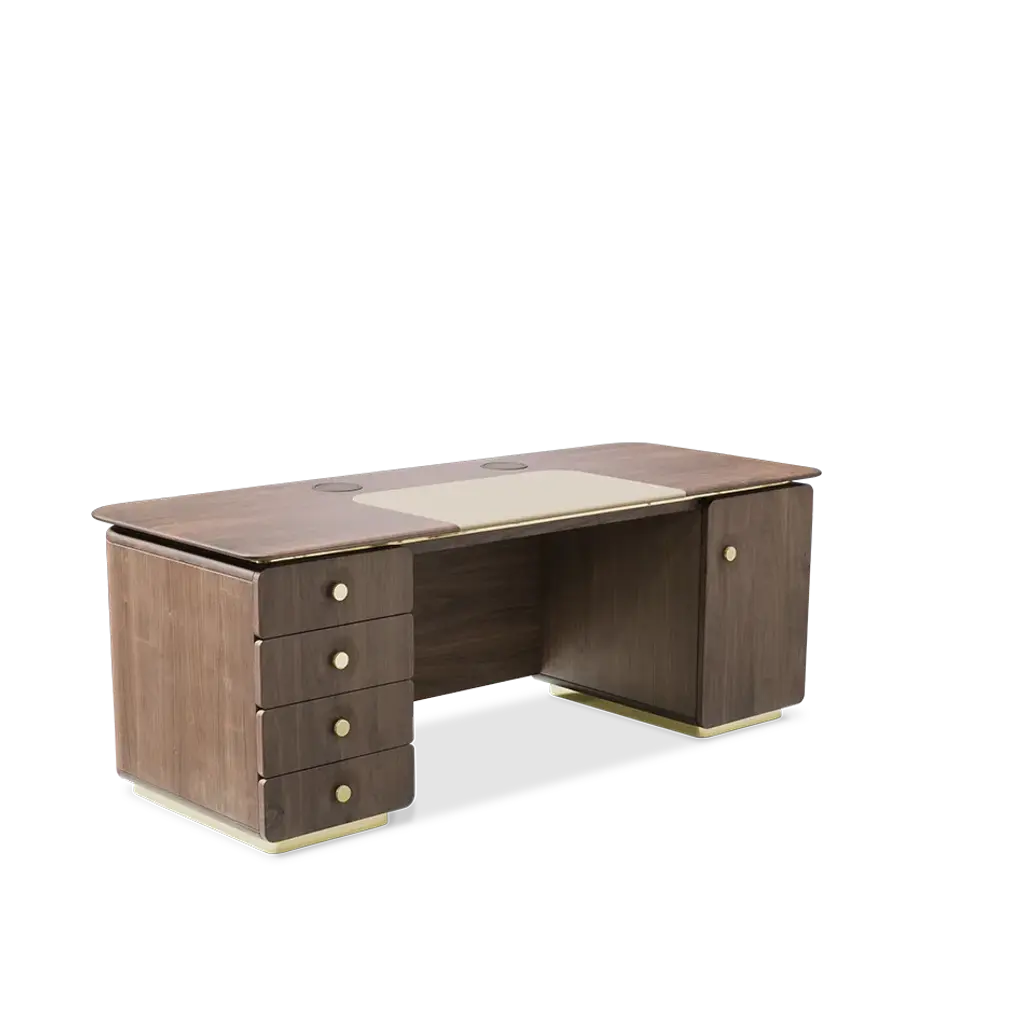 Arne Desk is a stunning mid-century furniture piece that will make a great addition to any home office. It adds a touch of luxury with gold-plated brass details and a particularly elegant velvet padding on the front, working alongside walnut wood. It’s the perfect piece for design lovers that want a piece of the past with all the luxury of the present.