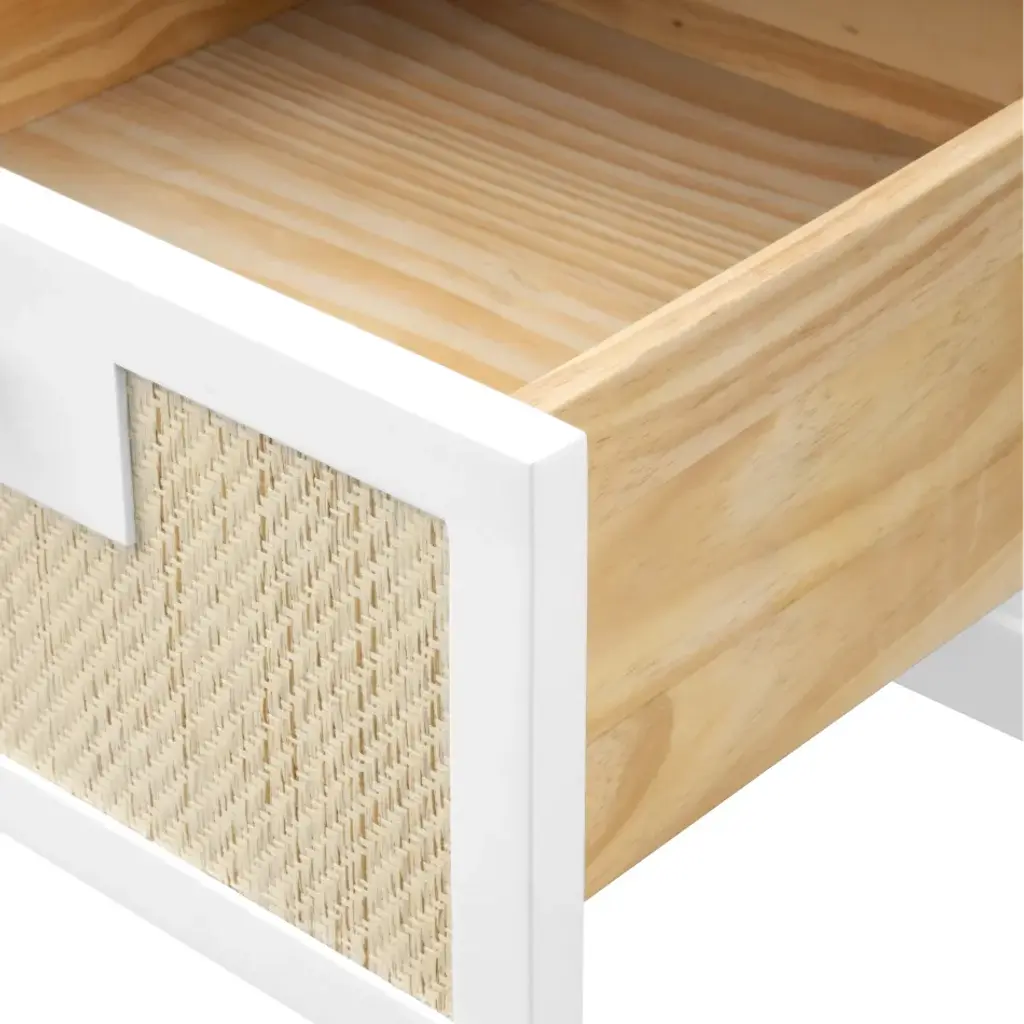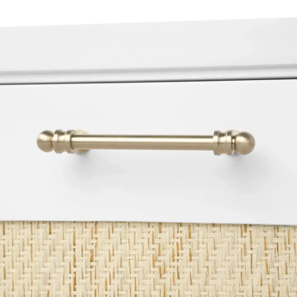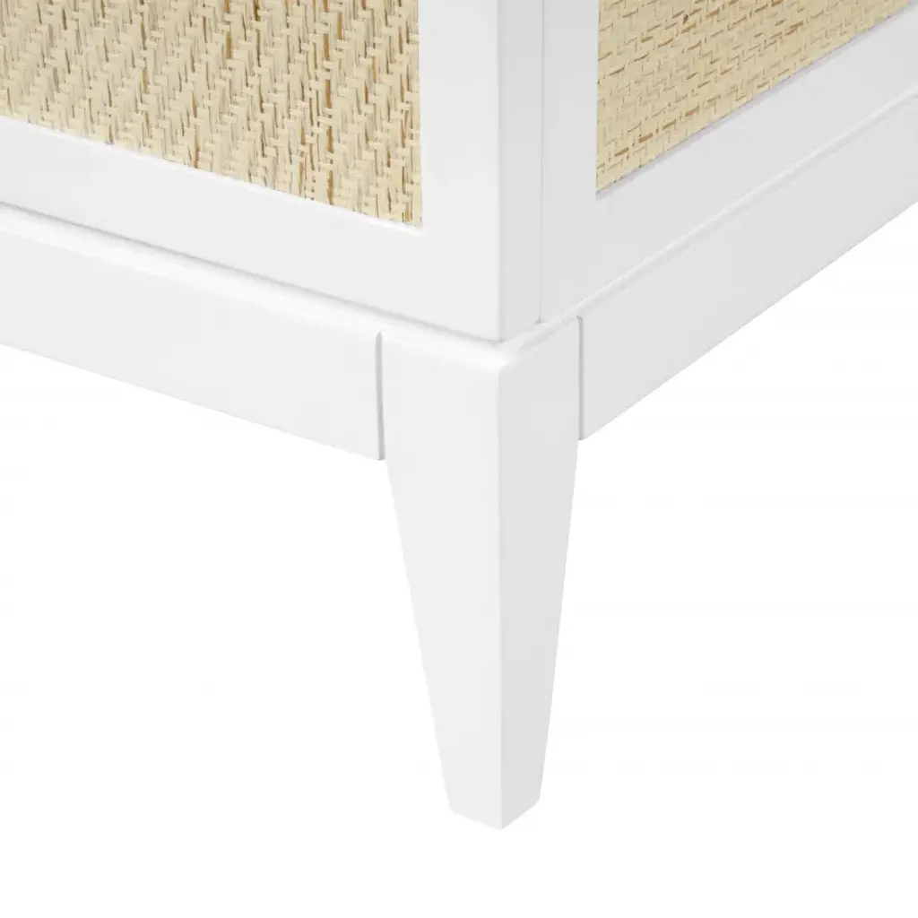 Modern minimalism meets Eastern romance in our Astor Collection, inspired by the elegance of Chinoiserie design. The Astor Desk, available in white lacquer, features panels of finely-woven grasscloth, which add a natural element. Its seven soft-closing drawers of veneered wood boast custom brushed brass pulls as the perfect finishing touch, securing its status as a chic and sumptuous piece of work. Add to a study, living room, or bedroom with worldly ambitions.