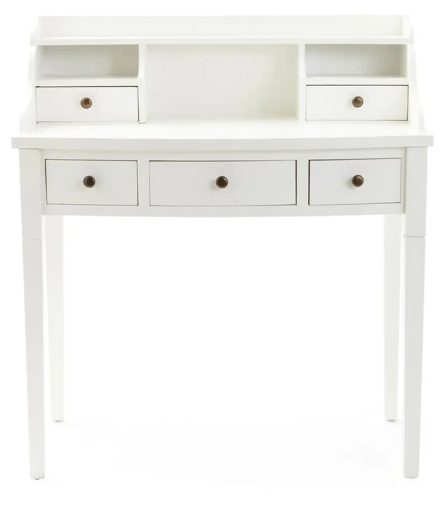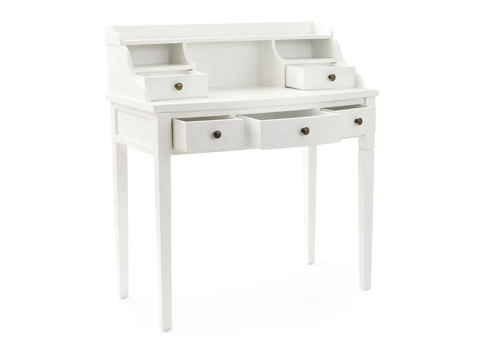 Just three feet wide, this writing desk nonetheless offers a wealth of functionality in addition to classic style: It has five drawers, several cubbies, and a top shelf. Perfect in the home office, bedroom, or even in the kitchen, this writing desk is sure to keep you organized in style.