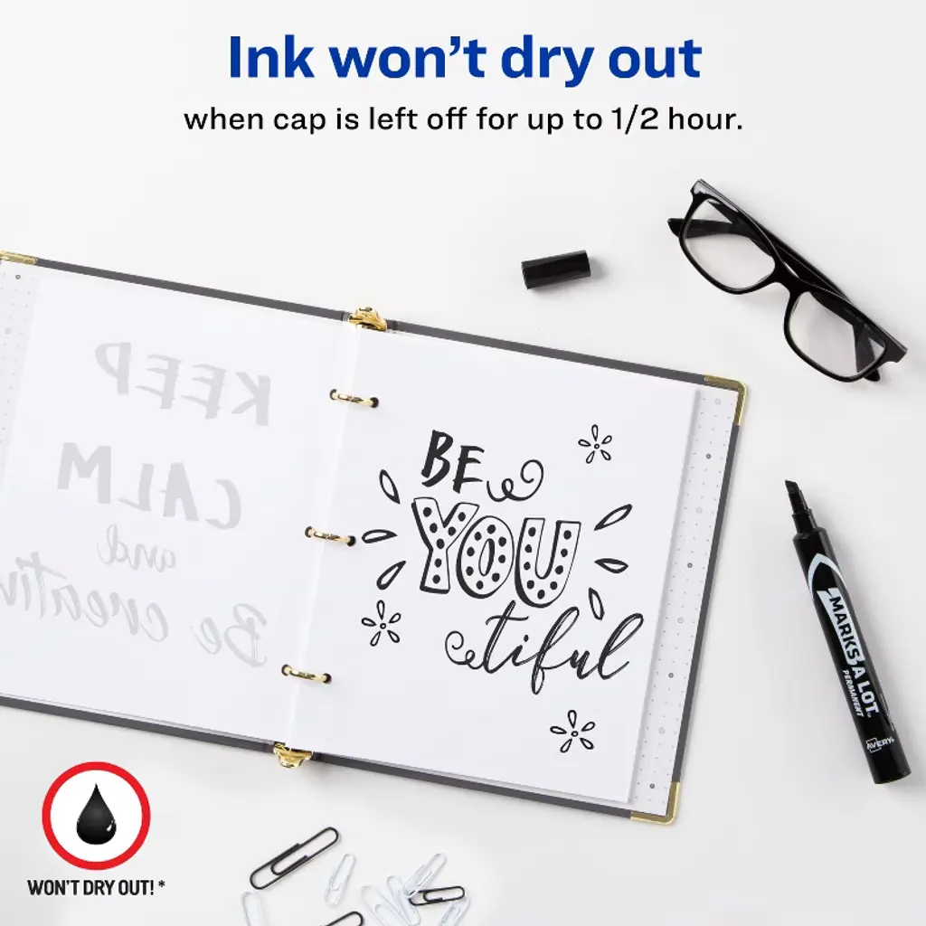 Avery Marks A Lot Permanent Markers, Large Desk-style Size, Chisel Tip, 12 Black Markers (98028)