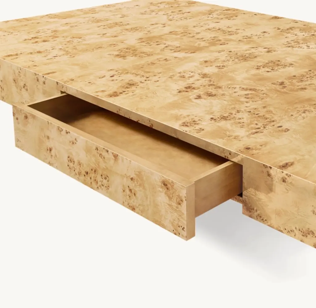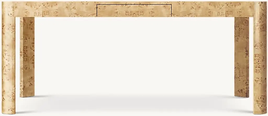 Understated and tailored in its restraint, our collection honors the minimalist geometric forms of 1970s postmodernism and the era's embrace of exotic materials. The clean, gently curved silhouettes are wrapped in burl wood veneers, which highlight the intricate, swirling grain patterns and mottled shading. Expertly cut and pieced by hand, the burl is sanded and buffed to an elegant sheen. Minimalist hardware and hidden hinges place the spotlight on expanses of rich woodgrain.SHOP THE ENTIRE COLLECTION