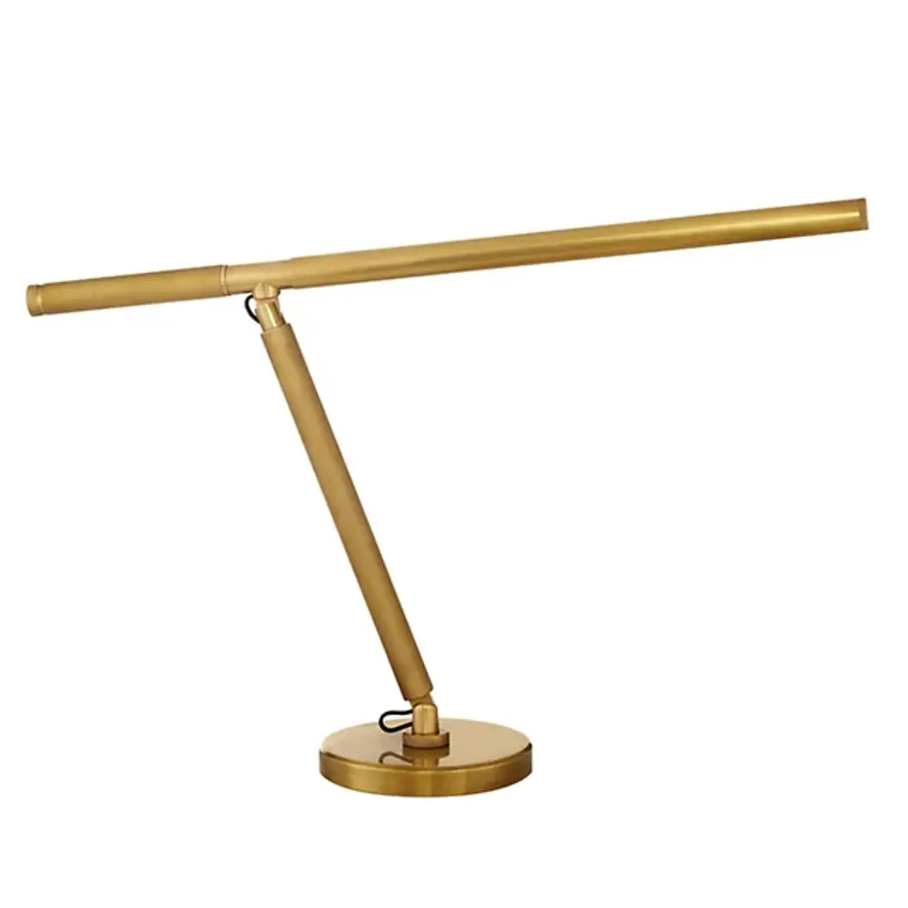 A simple and minimalist piece that brings a hefty dose of light to work and relaxation areas. The Barrett Arm LED Desk Light from Visual Comfort Signature, formerly known as Visual Comfort, is composed of smooth metal, creating an elegant allure that matches with a range of spaces. The rounded disc base upholds two perpendicular arms, which can swivel and adjust to a wide degree of positions. An integrated LED rests within the piece, emitting a bright glow that guarantees the task at hand is illuminated in a precise and even manner.
