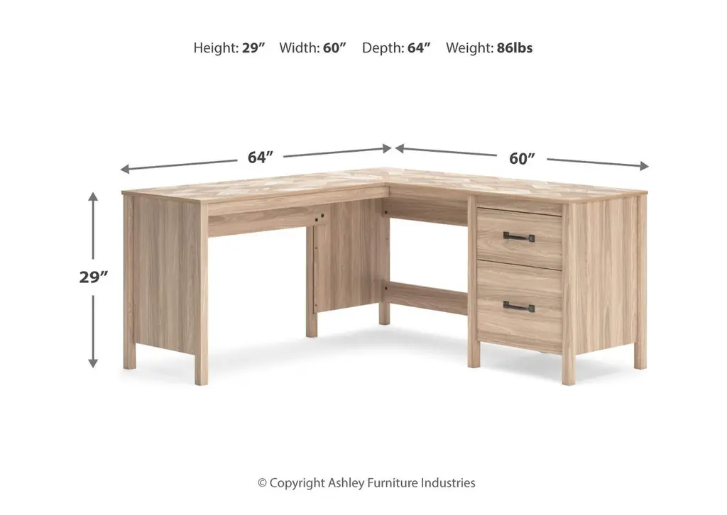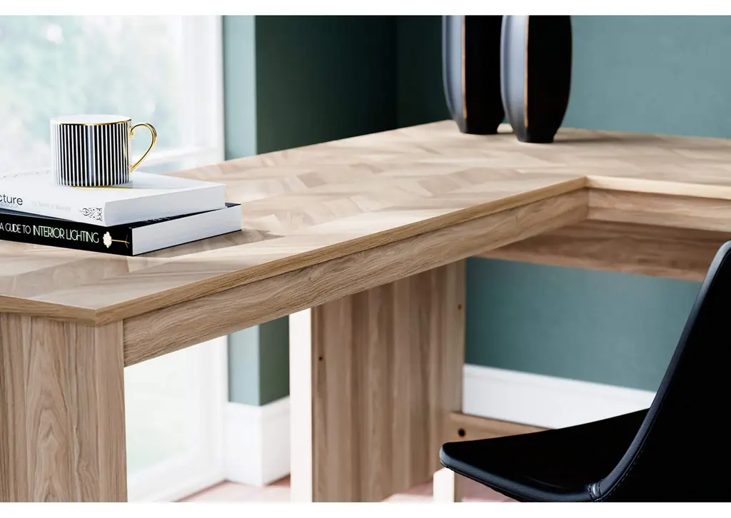 Your home office should reflect your style. Introducing a touch of mid-century modern design, the Battelle desk and return with its two-tone finish and unique chevron pattern is sure to enhance the scheme of any home office. Spacious work surface and ample storage for office supplies motivates you to get the job done. Weight 120.000 lbs. (54kgs.)