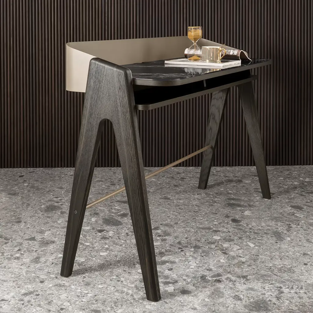 Bavero Breccia Imperiale Marble-Effect & Oak Writing Desk