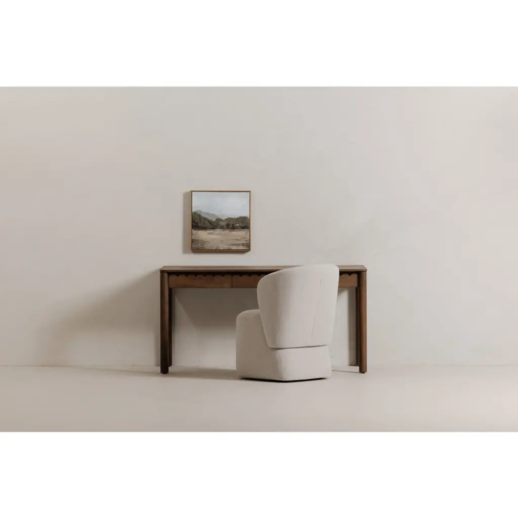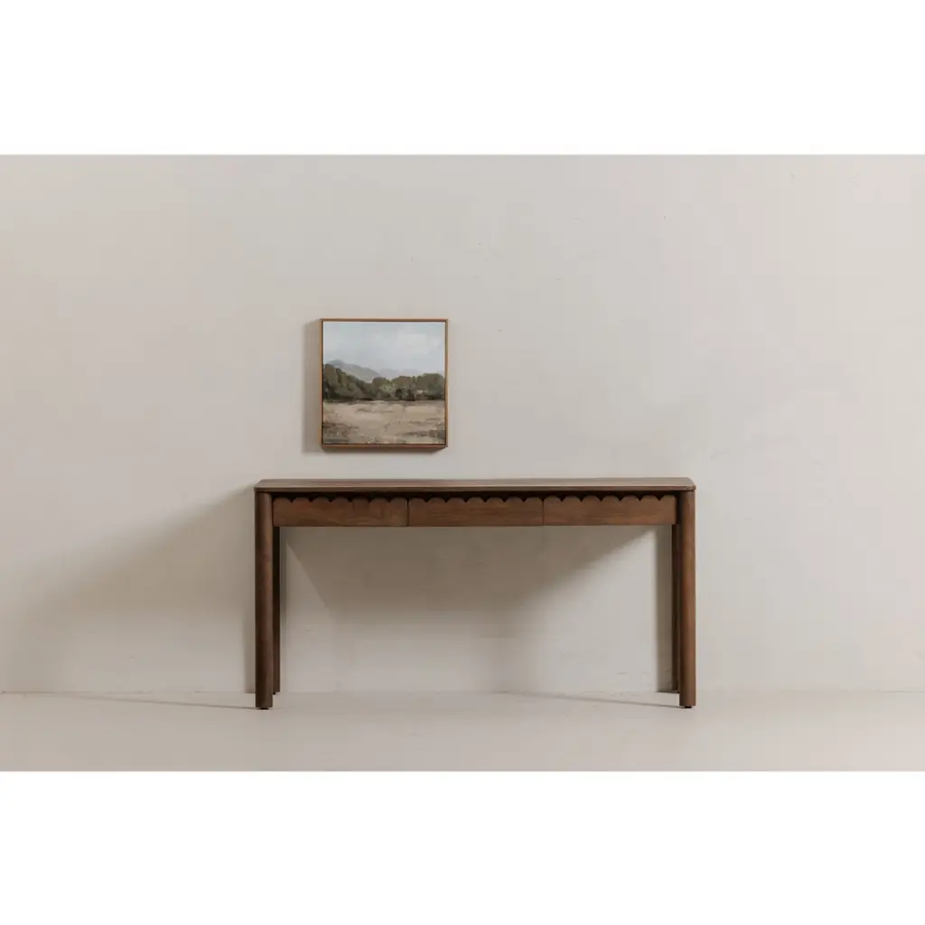 Bella Modern Classic Brown Mango Wood Scalloped Rectangular Desk