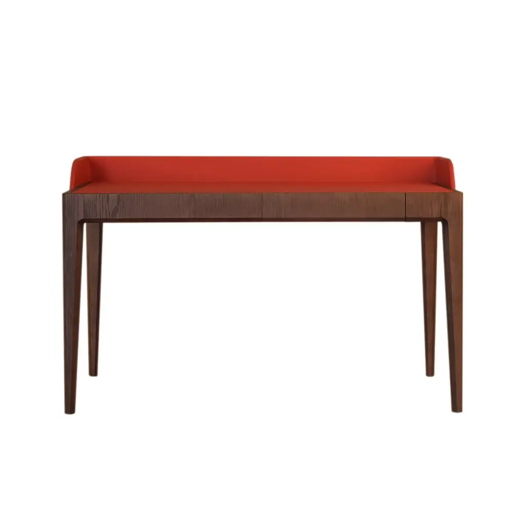 Bellagio Ash Wood Desk With Red Leather Upholstery And Hidden Drawer