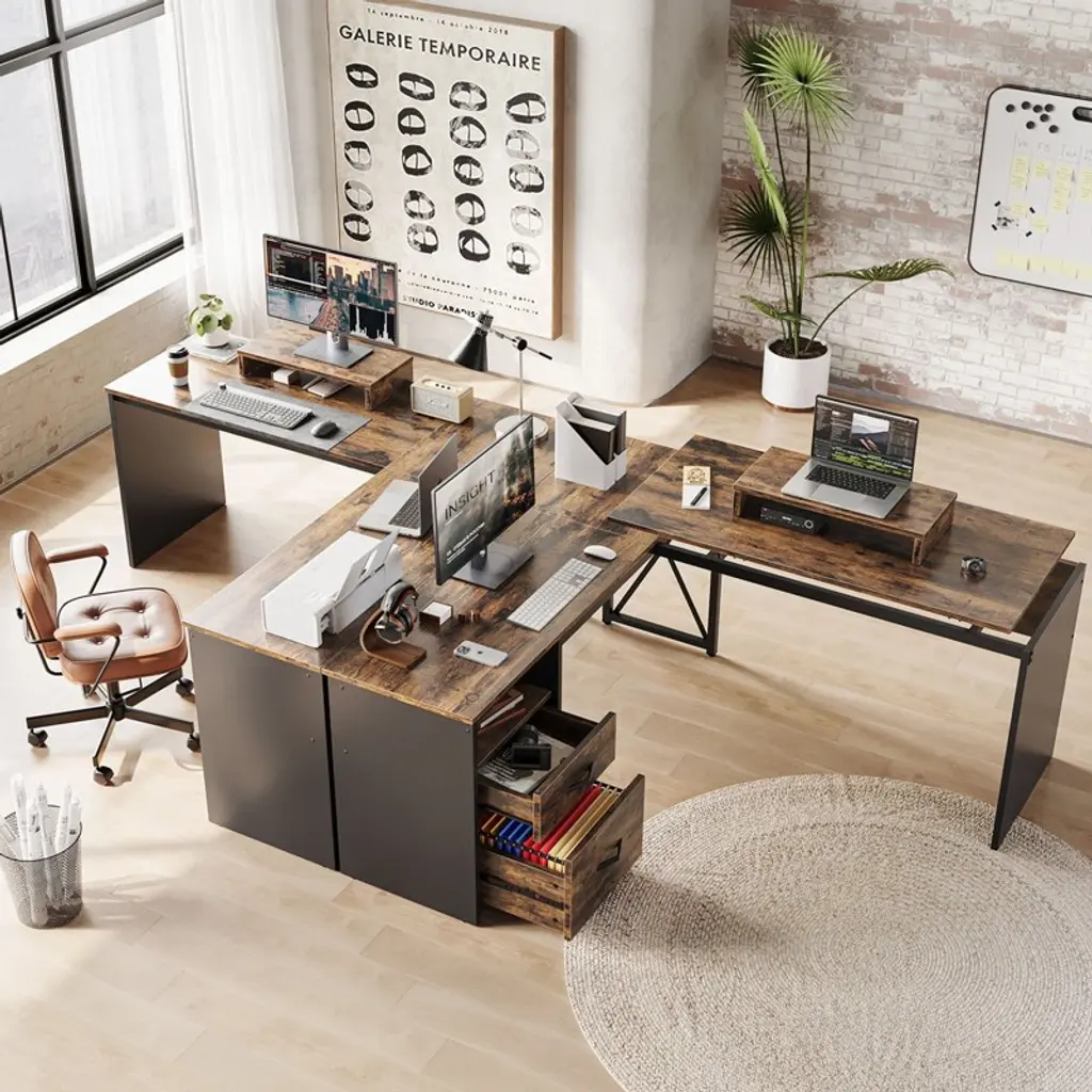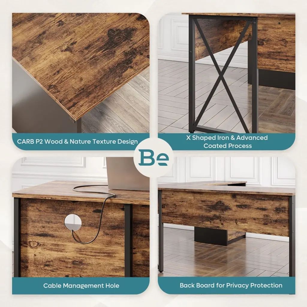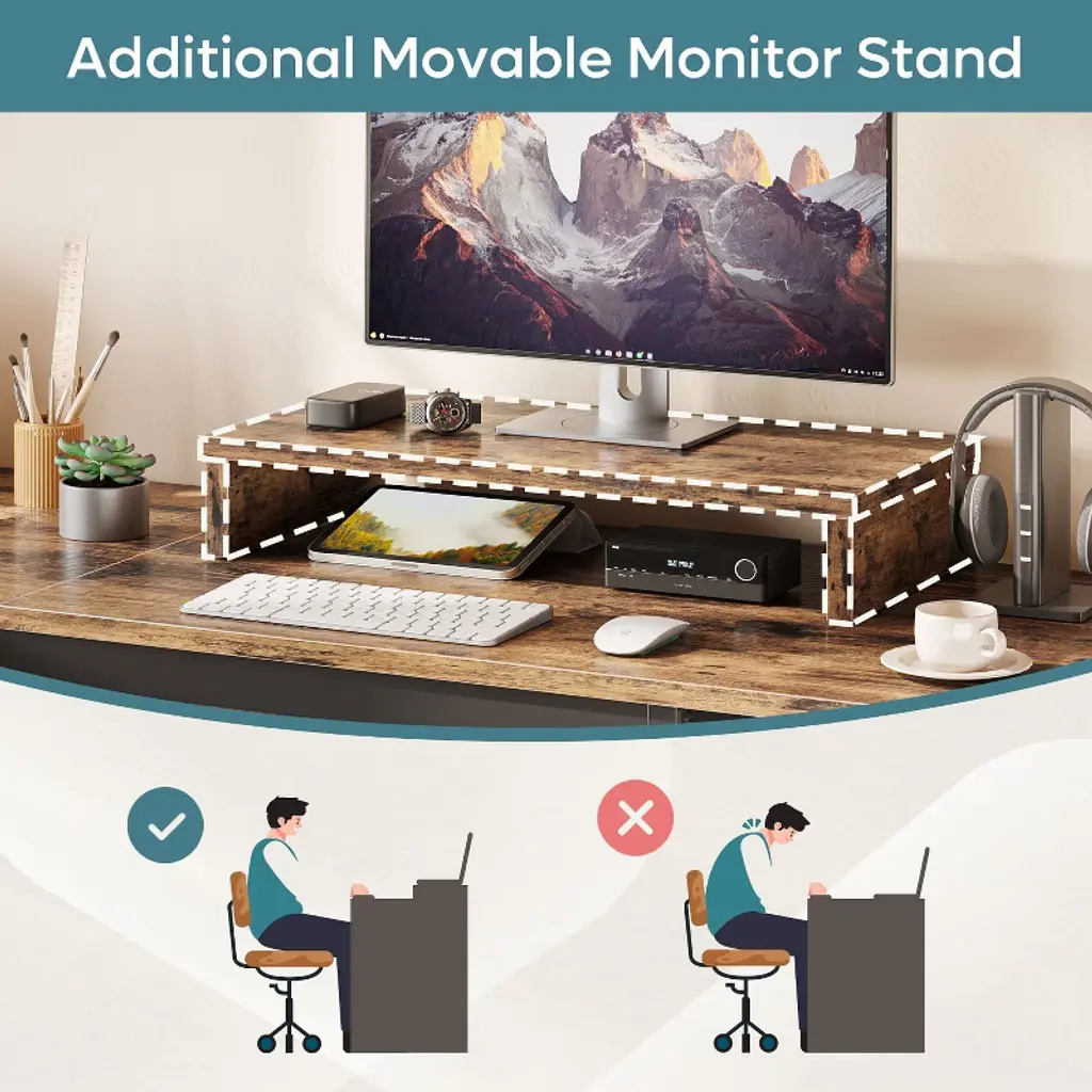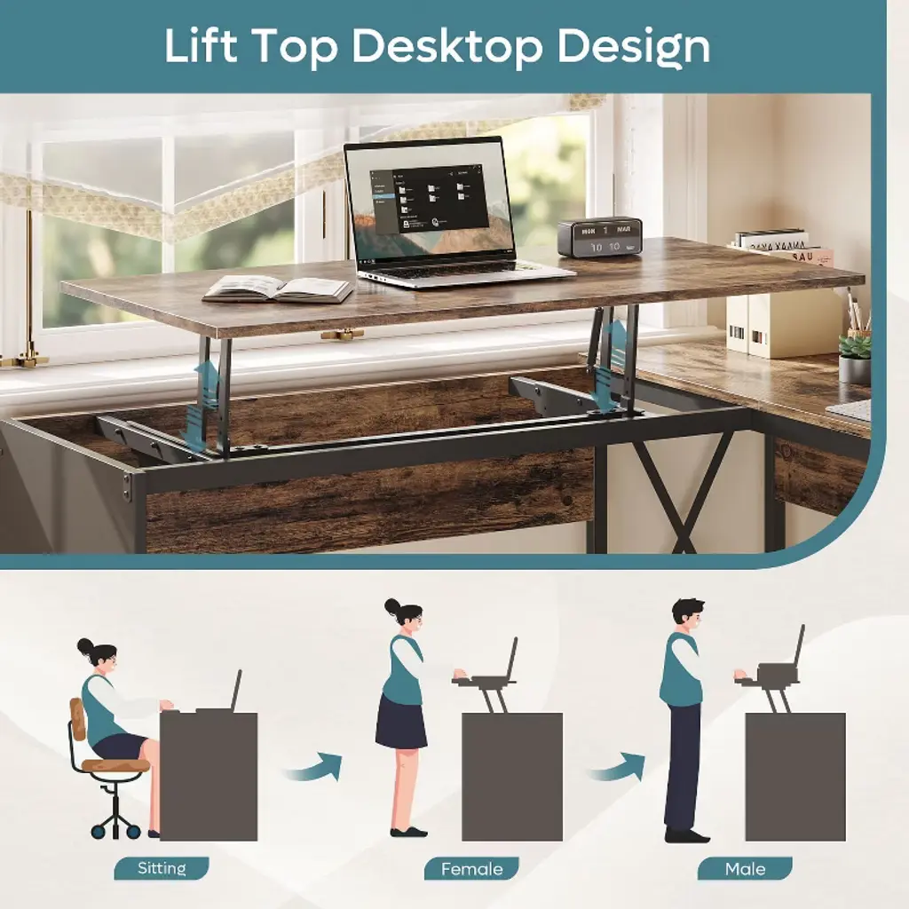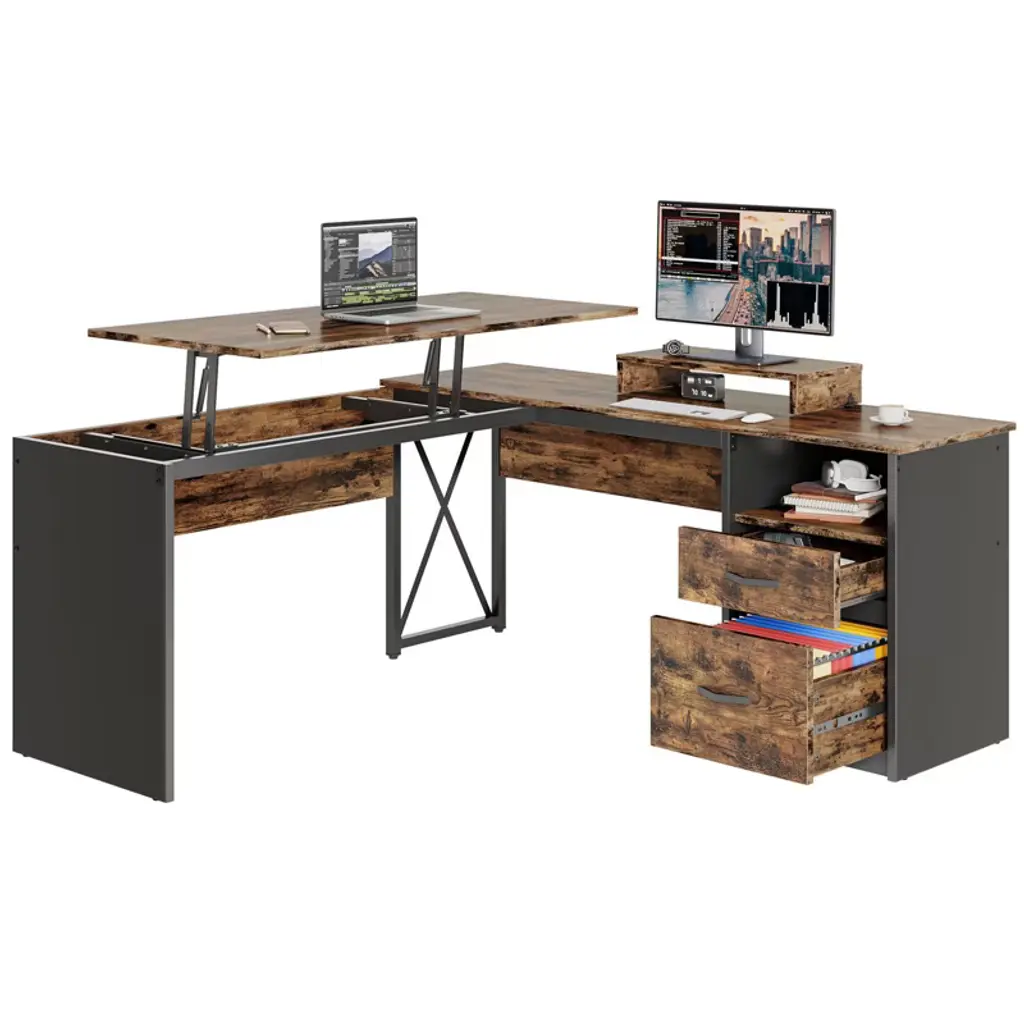 Bestier 56inch Lift Top L-shaped Desk With Monitor Stand Rustic Brown