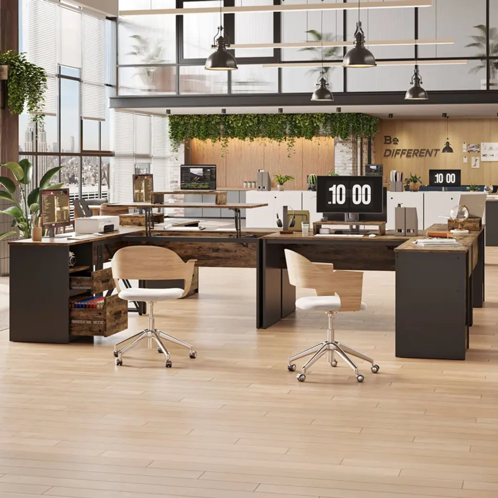 Choose to sit or stand with the styled and functional Bestier Lift Top Desk. With a spacious desktop, this computer desk can easily fit 2 or more monitors, allowing you to fully immerse yourself in your work. Feature with drawes and open shelves, the home office desk provide plenty of storage to assist with books, electronics, and loose office items, keeping your workspace organized and clutter-free. The bottom filing cabinet can hangs 3 sizes files. The desktop height can be raised 9 inches, providing a comfortable transition between sitting and standing positions. Additionally, the l shaped desk comes with a monitor stand to increase the height of the screen, ensuring that you maintain proper posture during extended periods of work. With a grey color, this desk will perfectly complement any home office or study.