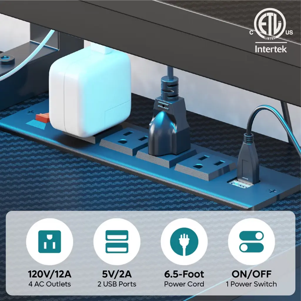 Enhance your gaming or work environment with the Bestier L-Shaped PC Office Gaming Desk. With dimensions of 71.5"L x 35.8"H x 31.5"W x 19.7"D, this desk provides generous space for all your gear. It includes an ergonomic monitor stand that easily supports two computer monitors and a laptop. The vibrant RGB LED lights create an immersive gaming ambiance, while 4 AC outlets and 2 USB ports offer convenient power access for multiple devices. Keep your workspace tidy with a variety of wood and wire mesh storage shelves. Additional features like cup holders and headphone hooks help keep your essentials organized. Opt for the Bestier L-Shaped PC Office Gaming Desk for a sleek, organized, and enhanced gaming or office setup.