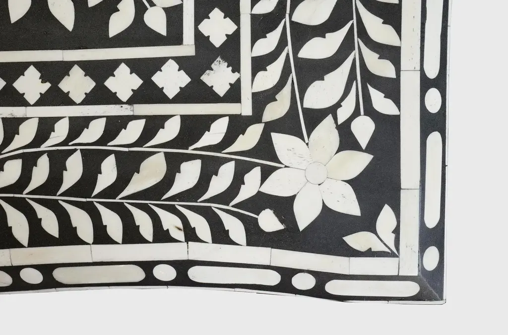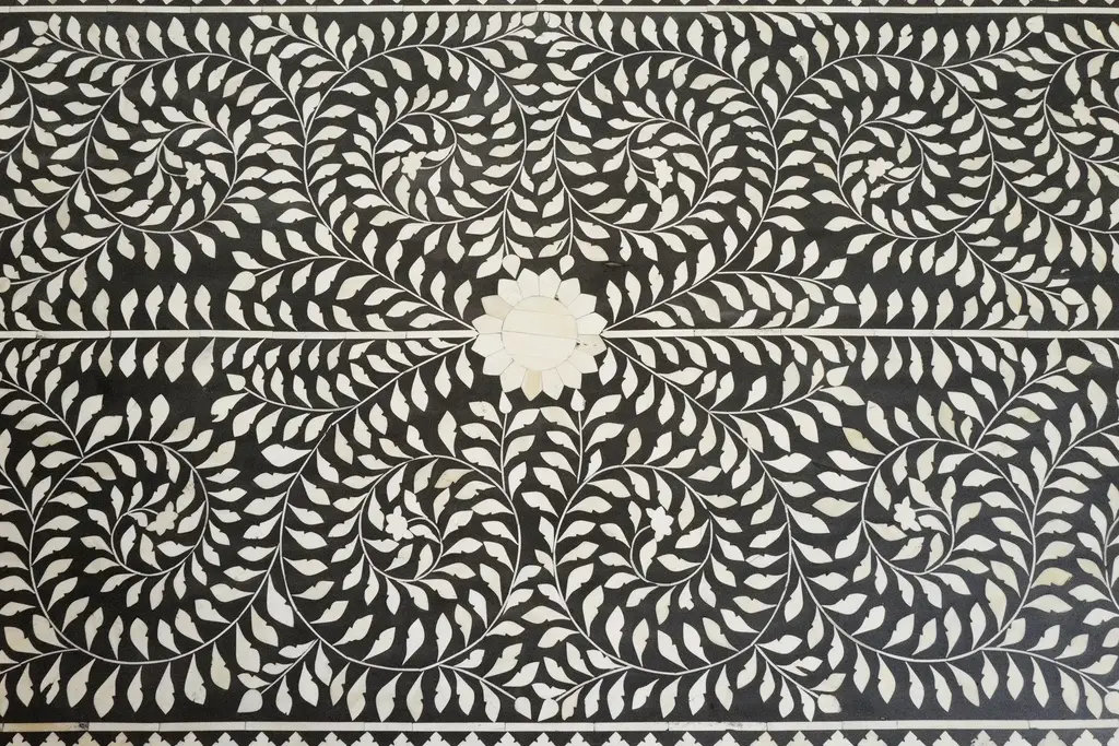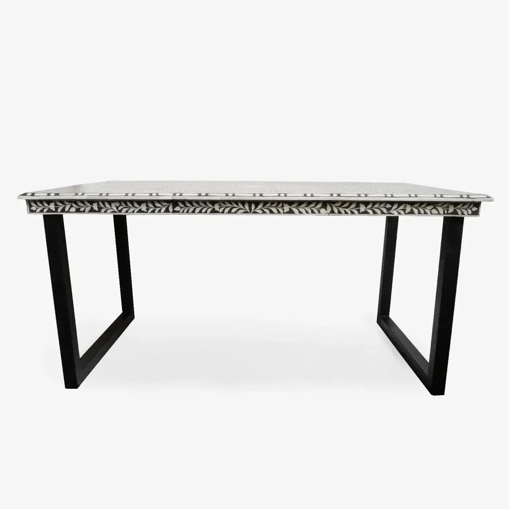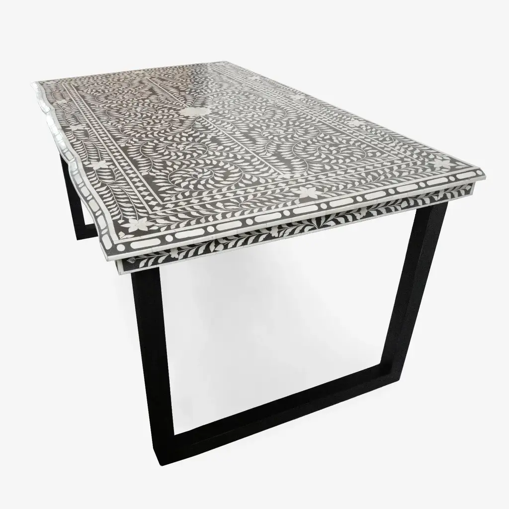 Black & White Floral Leaf Pattern Resin Inlay Desk