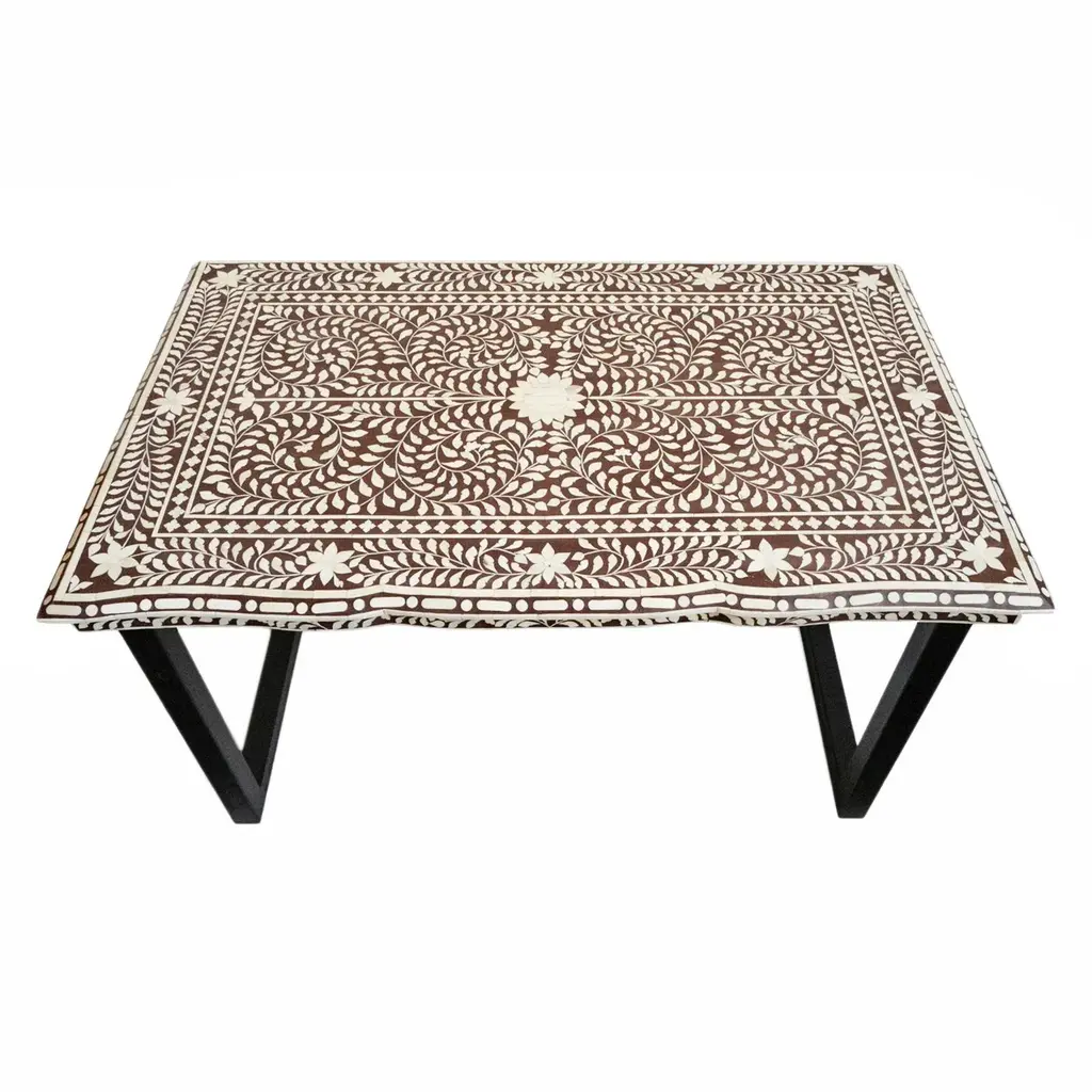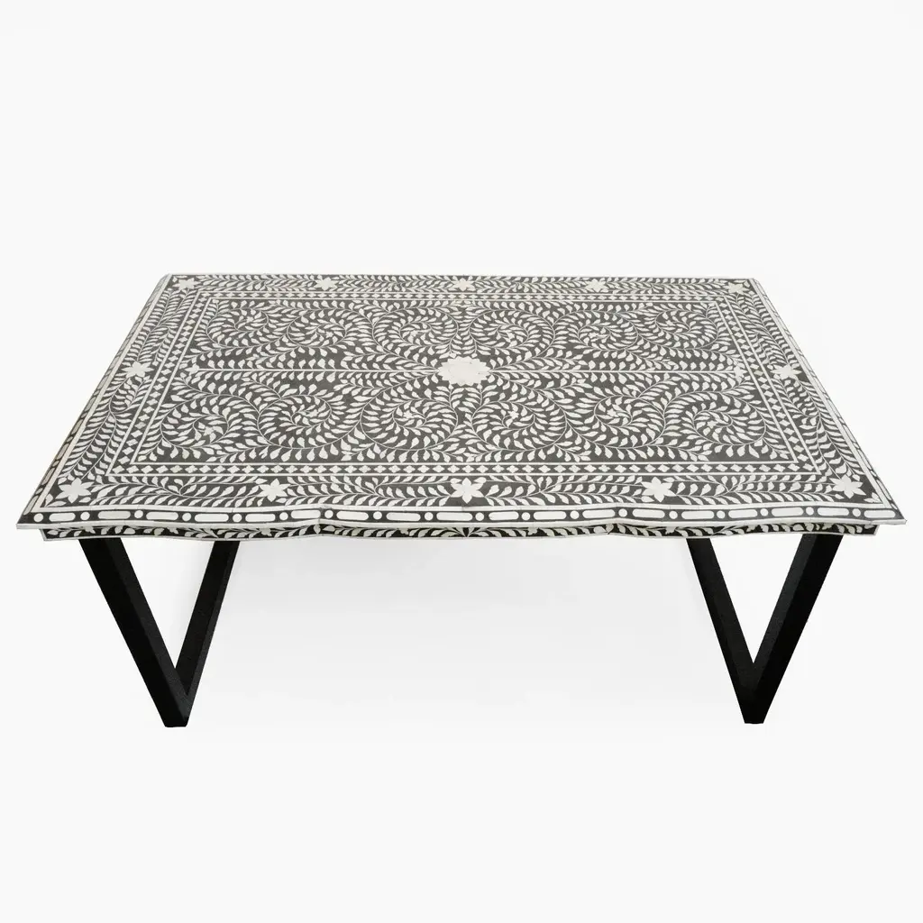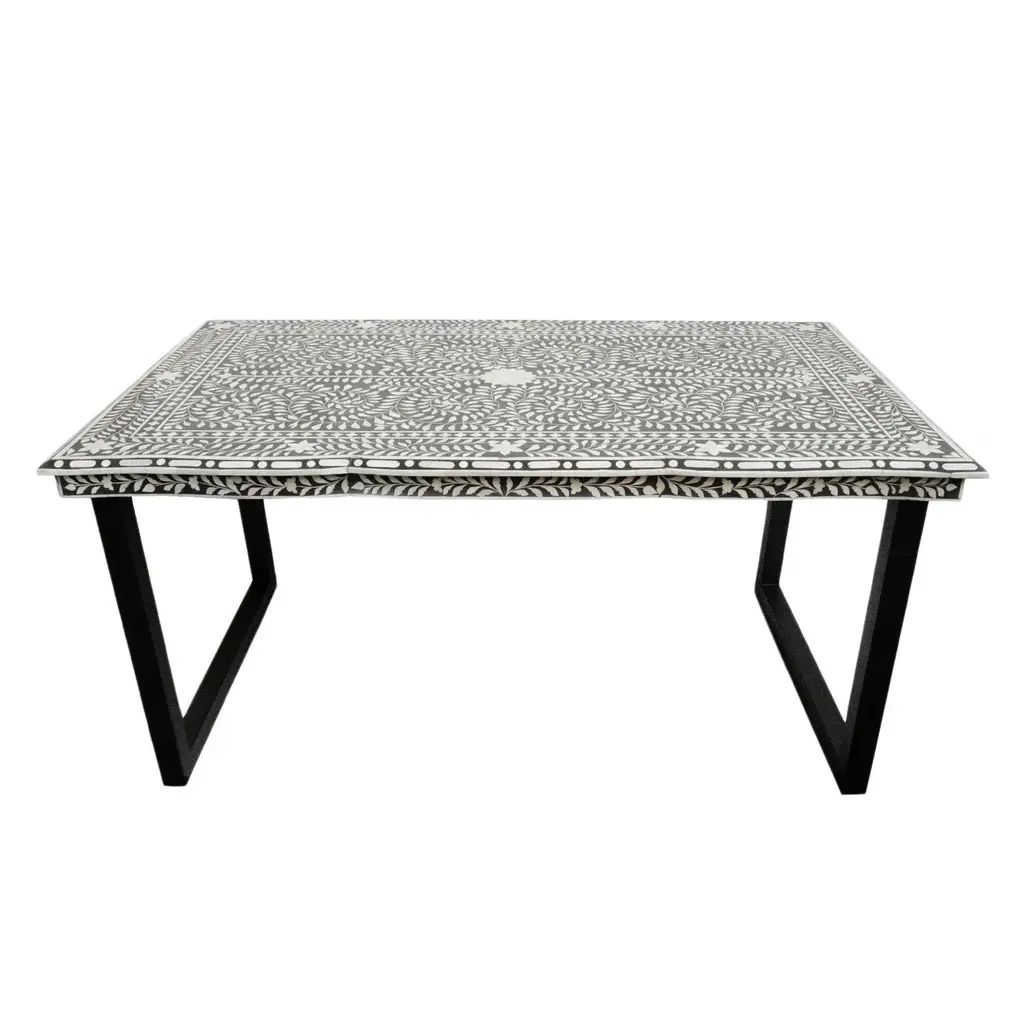 Black & White Floral Leaf Pattern Resin Inlay Desk
