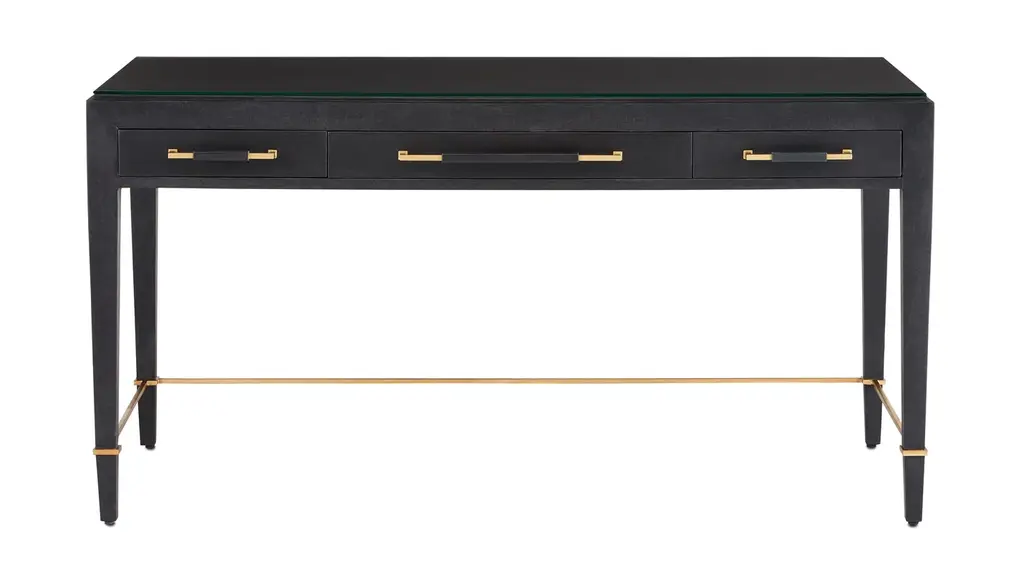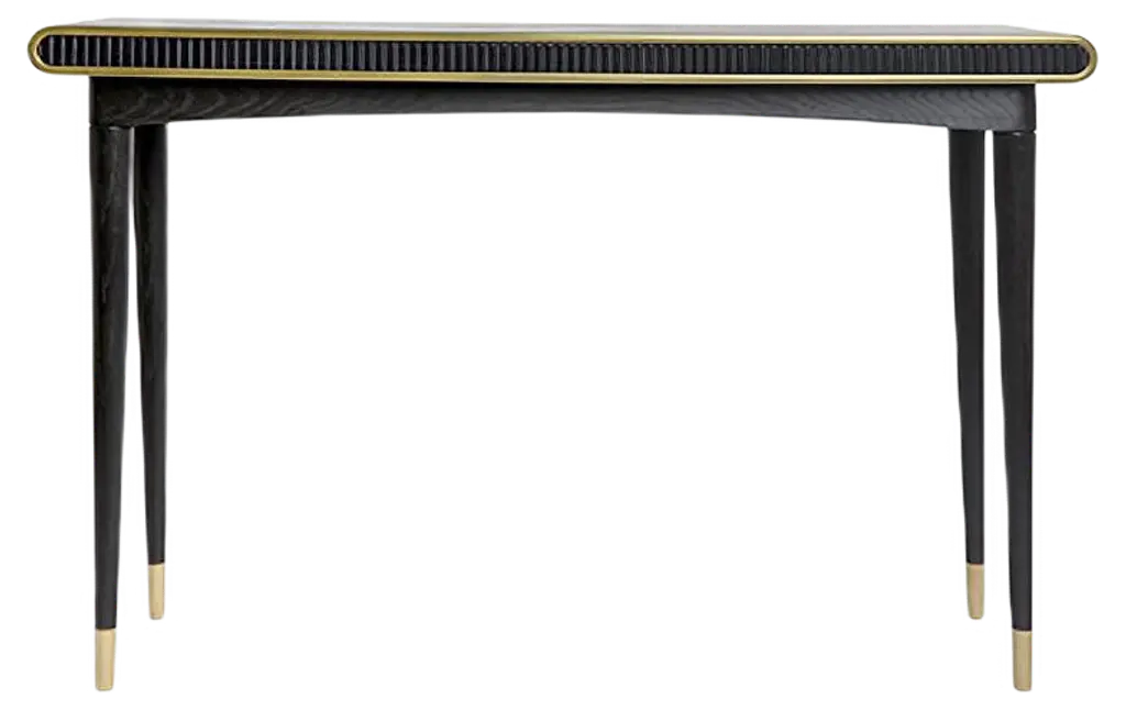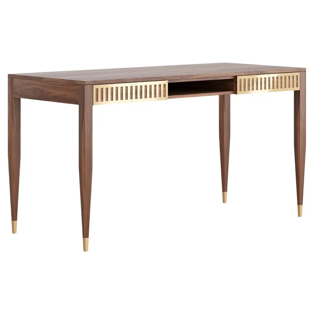 Black Oak Desk With Two Drawers With Brass Fronts In Mid Century Modern Style