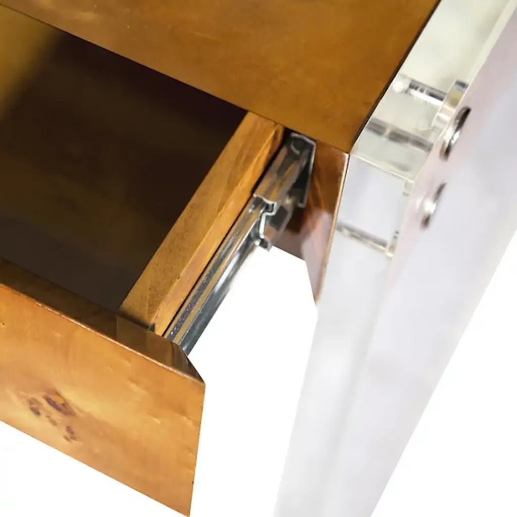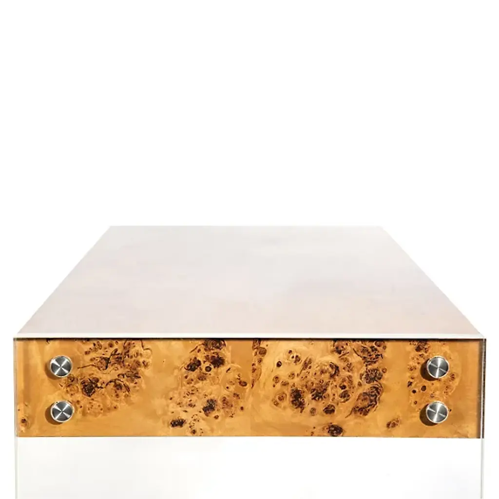 Sleek, stylish, and minimalist by design, the Bond Desk by Jonathan Adler is the perfect chic addition to an open office space. Clear acrylic legs, Stainless Steel accents, and two finished hidden drawers that pull open easy make the Bond Desk a savvy option for that room that’s needed a little something extra.