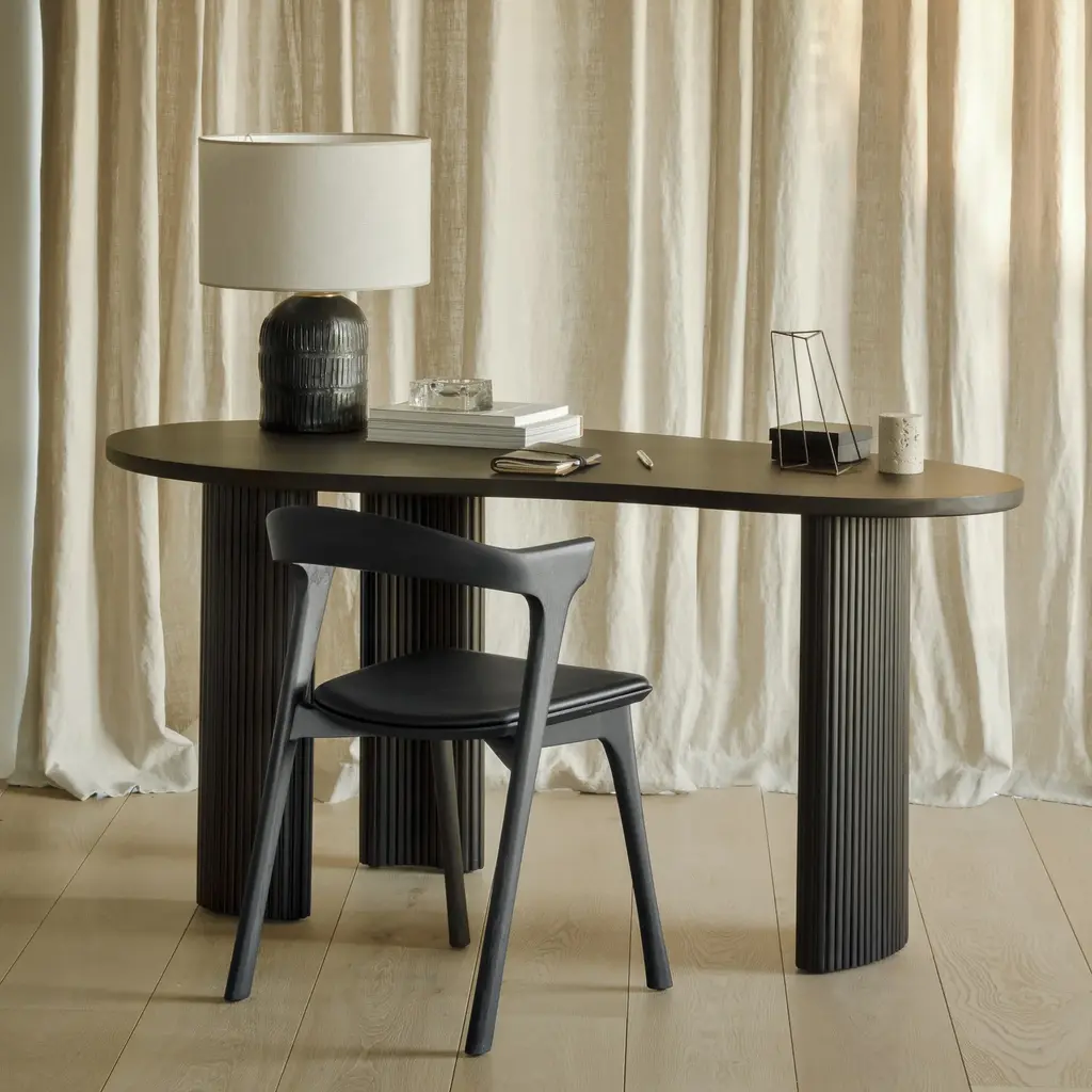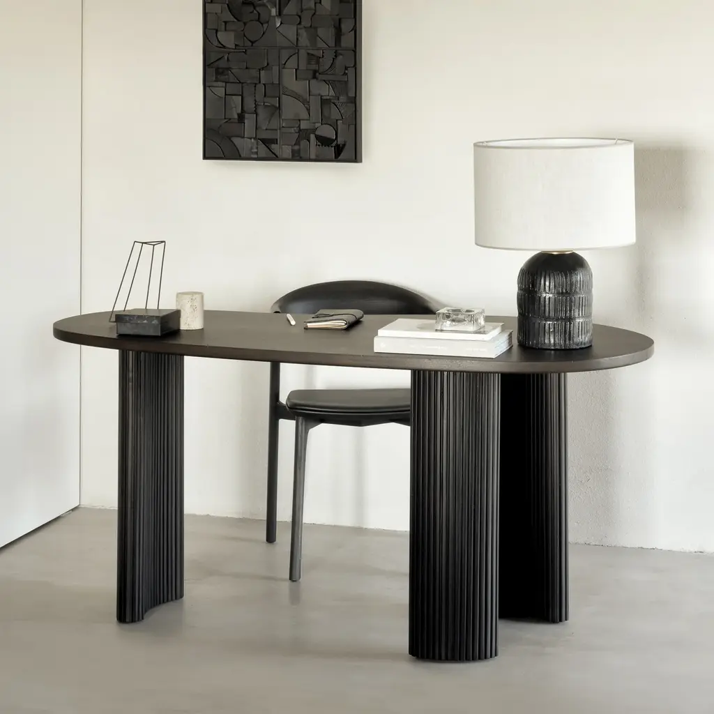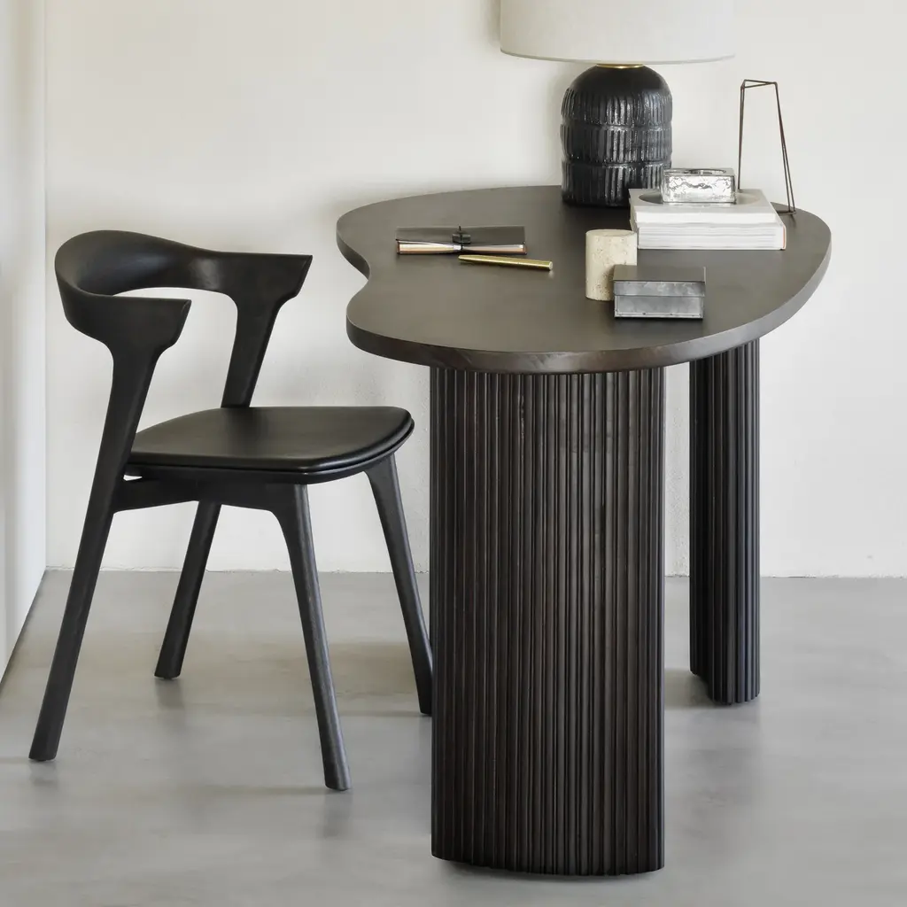 Inspired by shapes found in nature, the Boomerang collection features a playful, pebble top set on curved legs with a stacked, wood stick effect. The Boomerang desk is a statement piece for any workspace with its organic, eye-catching design unique for the office. Features