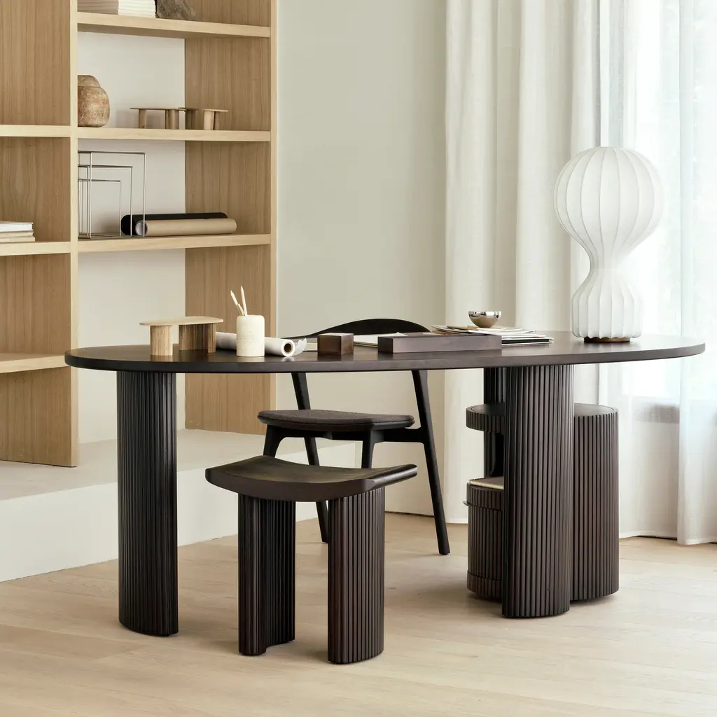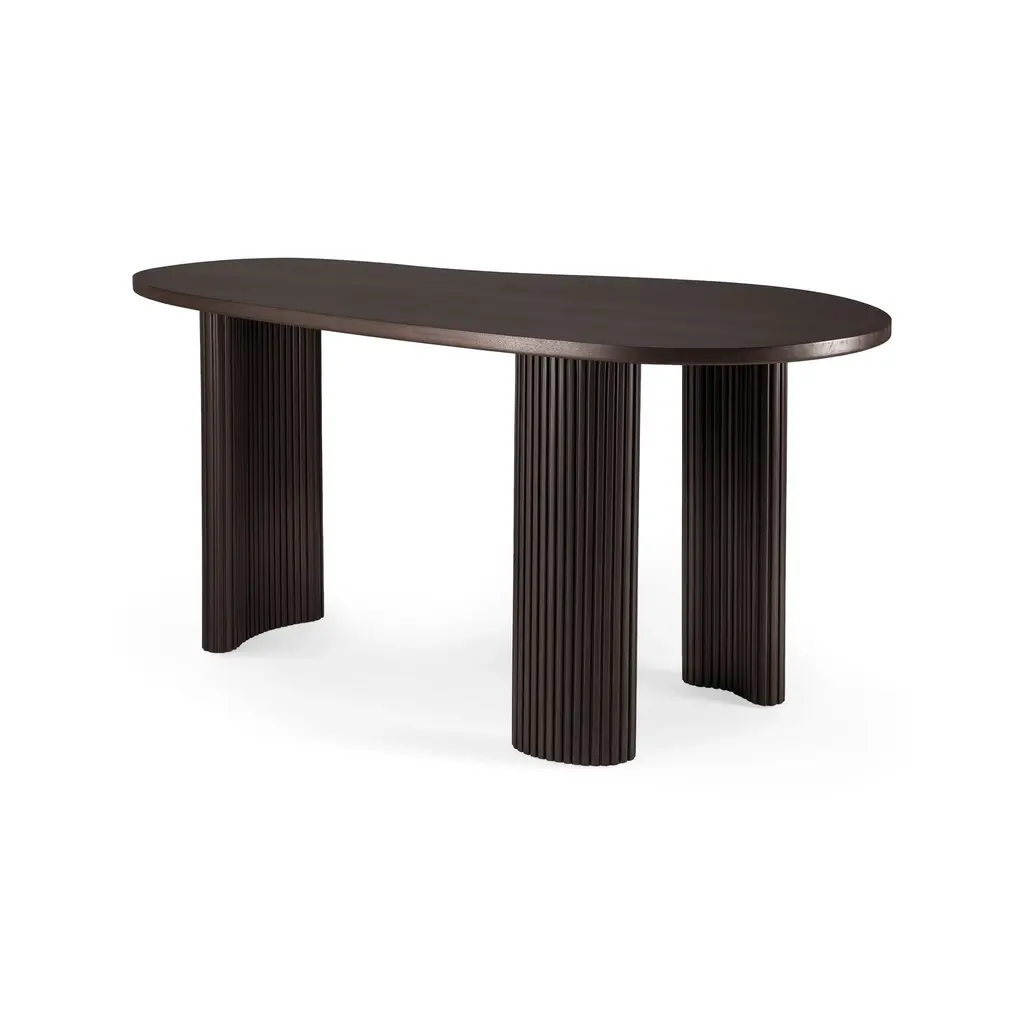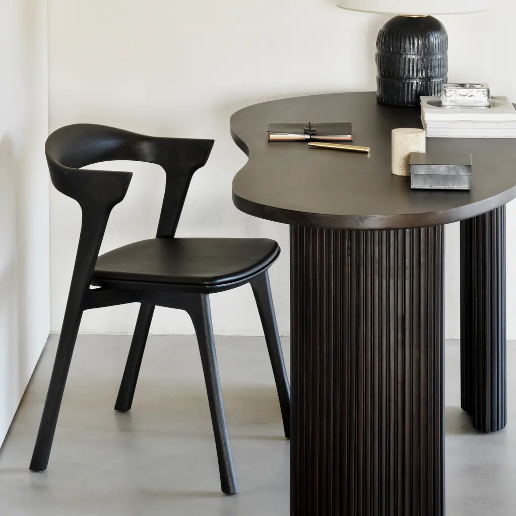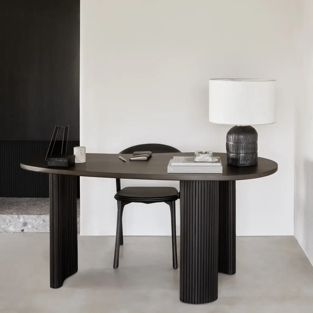 Inspired by shapes found in nature, the Boomerang collection features a playful, pebble top set on curved legs with a stacked, wood stick effect. The Boomerang desk is a statement piece for any workspace with its organic, eye-catching design unique for the office. Features