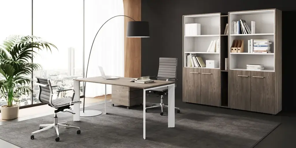 Bramante is a furniture high profile operating and semi-executive desking system.Its main feature consists in a structure which is composed by metal legs inclined by 45 degrees with a rhomboid section.The workstations are made of wooden melamine conglomerate with a thickness of 18 mm, available in the following finishes:- white moon- reina nut- collins oakMetal legs are available in the following finishes:- White- Anthracite- Grey bonderized