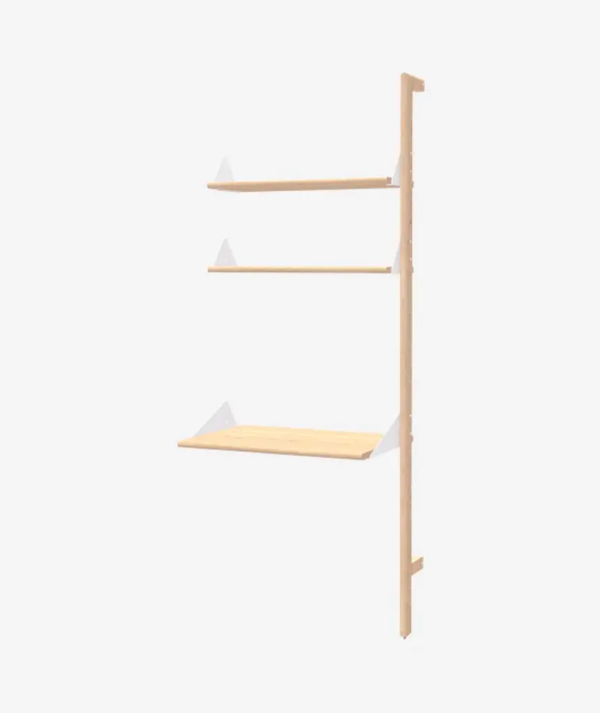 The Branch Shelving System blends mid-century style with modular components that give you an infinite number of elegant, open-storage options for home or office. The design features varying bookshelf configurations that can be transformed into a seamless workspace with the addition of a desk unit. Additional add-on units let you customize the size and layout of your shelving system to perfectly suit your space, and the shelves are height adjustable to suit any arrangement of decorative items or resources. Refined details, such as rounded edges on the shelves and uprights, soften Branch’s aesthetic and enhance its architectural style. Straightforward installation means you can spend more time perfecting your vision and display. *Includes: 1 Branch Upright, 1 Desk Shelf and 2 Shelves. Additional Add-Ons may be purchased here to customize the configuration.