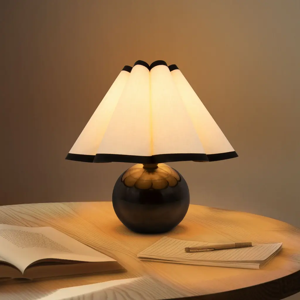 Brightech Blair 10.08 In. Polished Black Midcentury Led Globe Bedside Desk Table Lamp With White Cotton Empire Shade - Polished Black