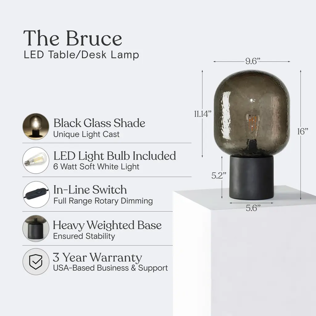 Bring a luminescent masterpiece into your home or workspace with The Bruce by Brightech, an exquisite table lamp that encapsulates both strength and grace. The robust black cement base, a nod to urban sophistication, is crowned by a black glass shade whose subtle texture refracts a warm light, enriching the atmosphere with a soft, comforting glow. Whether it's setting the stage for a tranquil bedroom escape, adding a touch of finesse to your living room, or brightening your study, The Bruce melds effortlessly with any décor from industrial modern to transitional. Its full range dimming capability ensures the perfect ambiance for every moment, from the soft whisper of dusk to the bright focus of daylight hours. This piece isn't just about illumination—it's about creating a statement that speaks to timeless elegance and modern functionality. Paired with an LED bulb and a 3-Year Warranty, The Bruce is a testament to Brightech's commitment to environmentally conscious design and lasting durability.