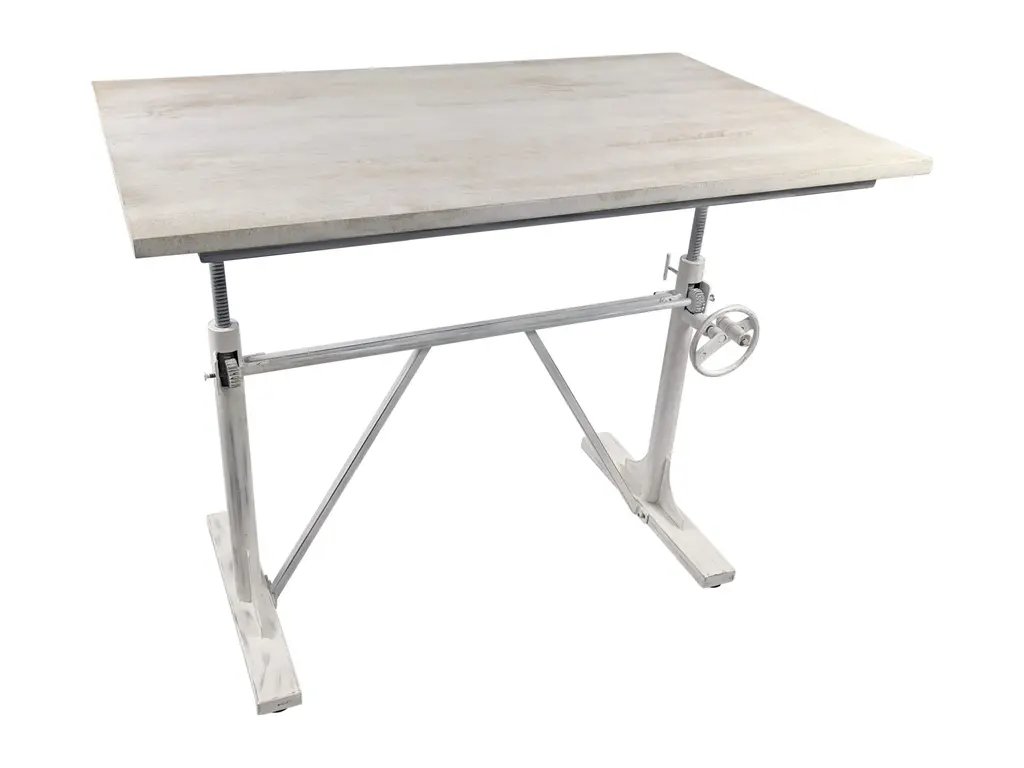 Elevate your workspace—literally—with our Brio Adjustable Desk, where rugged craftsmanship meets modern functionality. Featuring a distressed mango wood top and a cast iron base, this desk blends vintage-industrial design with the flexibility of a hand-crank height adjustment system.With just a turn of the crank, transition from sitting to standing to suit your workflow and comfort. The sturdy metal base ensures stability, while the natural wood top adds warmth and character—perfect for loft offices, creative studios, or home workspaces with urban edge.Whether you're designing, writing, or working from home, this desk offers bold style and ergonomic support in one versatile package.