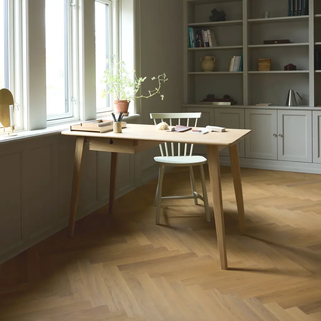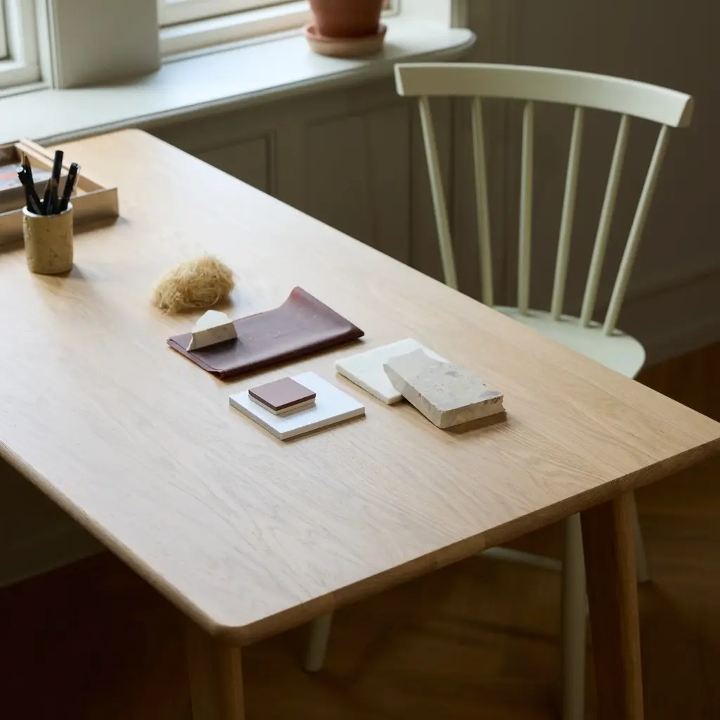 The C67 Butler Desk from FDB Mobler offers a minimalist and elegant solution for modern Nordic interiors. Crafted from pale oak, its sleek design balances lightness and stability, making it ideal for a variety of living spaces, including compact homes. Featuring a thoughtfully designed drawer that can be inserted from either side, this desk combines versatile functionality with the timeless craftsmanship and honest materials characteristic of Danish design tradition. Highlights