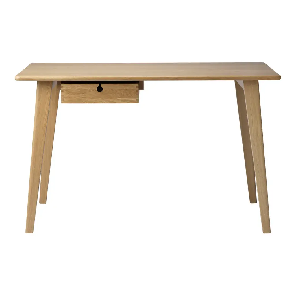 The Butler desk is a perfect and minimalist design for modern Nordic interiors. With its sleek design in pale oak, the highly versatile desk will look great in most homes and meet the many and varied needs of modern households. Not least in small homes and flats. Butler is an outstanding example of solid craftsmanship that respects the Danish design tradition of honest materials and transparent construction. The design immediately strikes one as light yet stable and with a harmoniously composed desktop and frame. The Butler desk is available in two widths: 120 cm and 156 cm. Both versions are 60 cm deep. The desk incorporates a drawer which can be inserted from both sides depending on what is most suitable. The solid desktop is also available with a lacquered surface, which is very resistant to wear and tear.