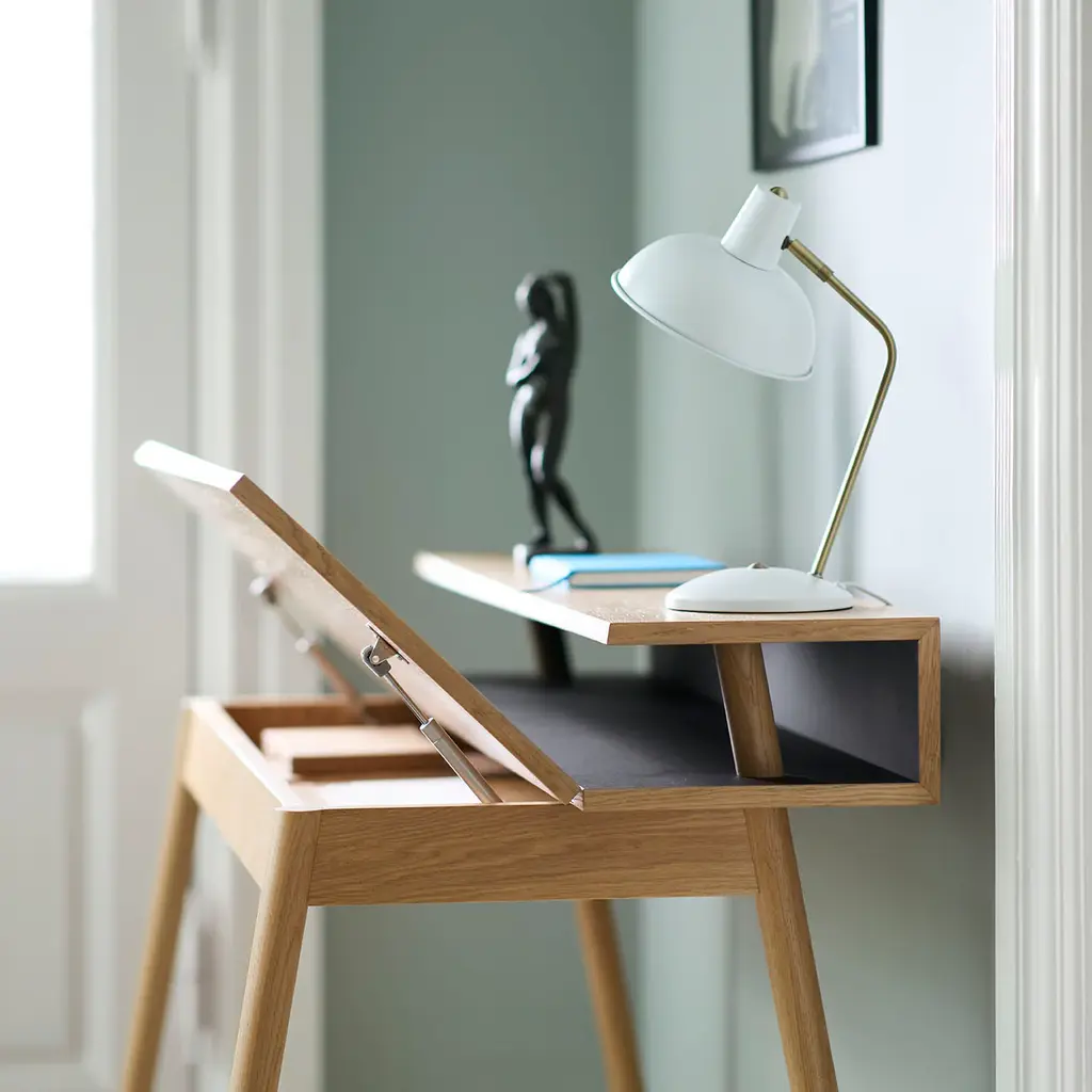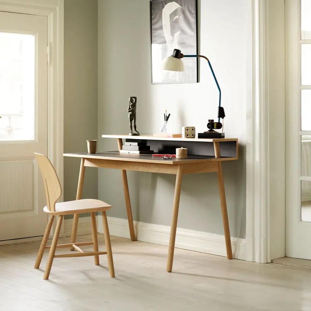 The C68 Norrebro Desk by Isabel Ahm for FDB Mobler combines stylish simplicity with practical functionality. Its minimalist design fits seamlessly into any home, including small apartments. Featuring a raised shelf for extra storage, it enhances ergonomic comfort—ideal for placing your laptop—or showcases your favorite decor, making it a refined and versatile workspace solution. Highlights