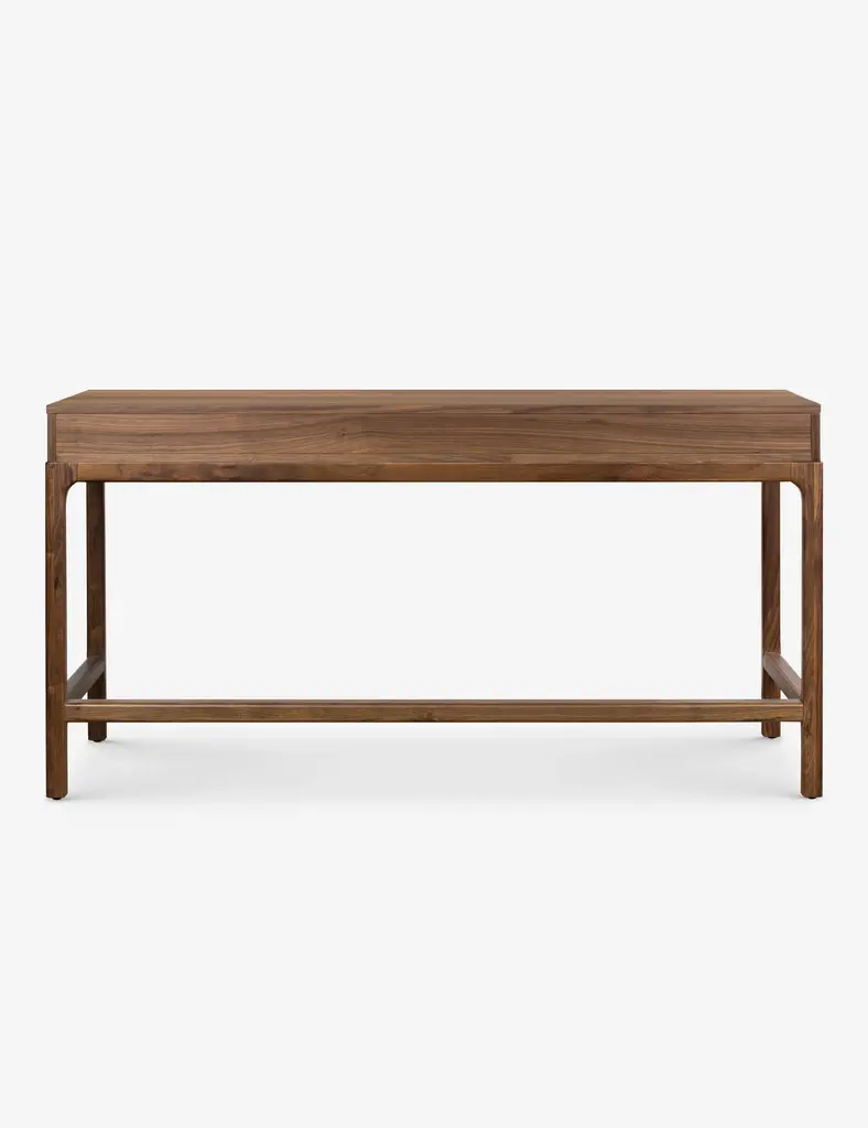 Inspired by campaign furniture of the 1800sdesigned to be lightweight, durable, and easily portable for travelthe Cameron desk offers that same timeless elegance with a modern design. The desk's pared-down frame is perfect for a functional yet elevated workspace that blends the old with the new. A warm finish enriches the piece, showcasing the natural walnut grain.