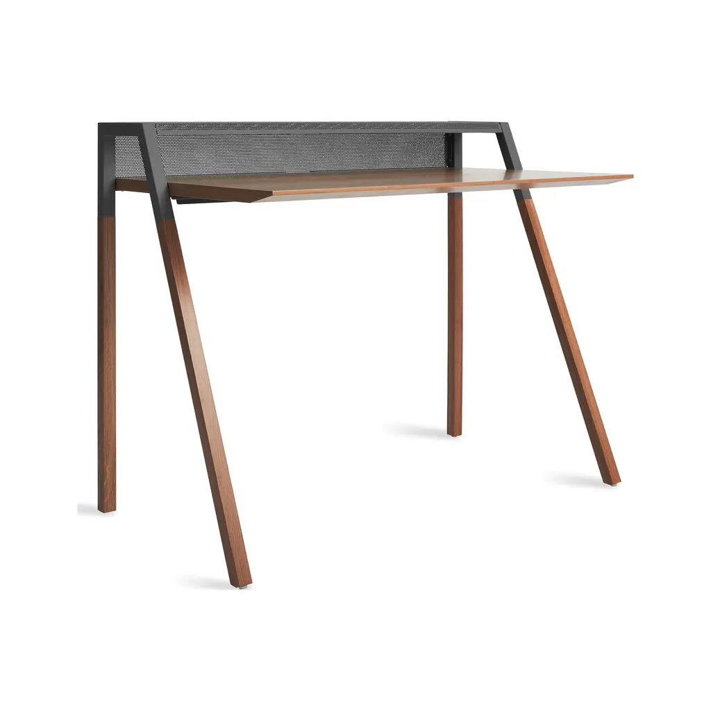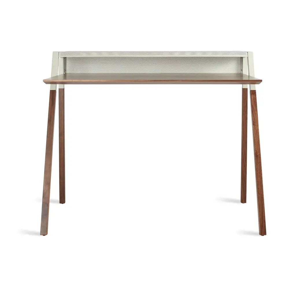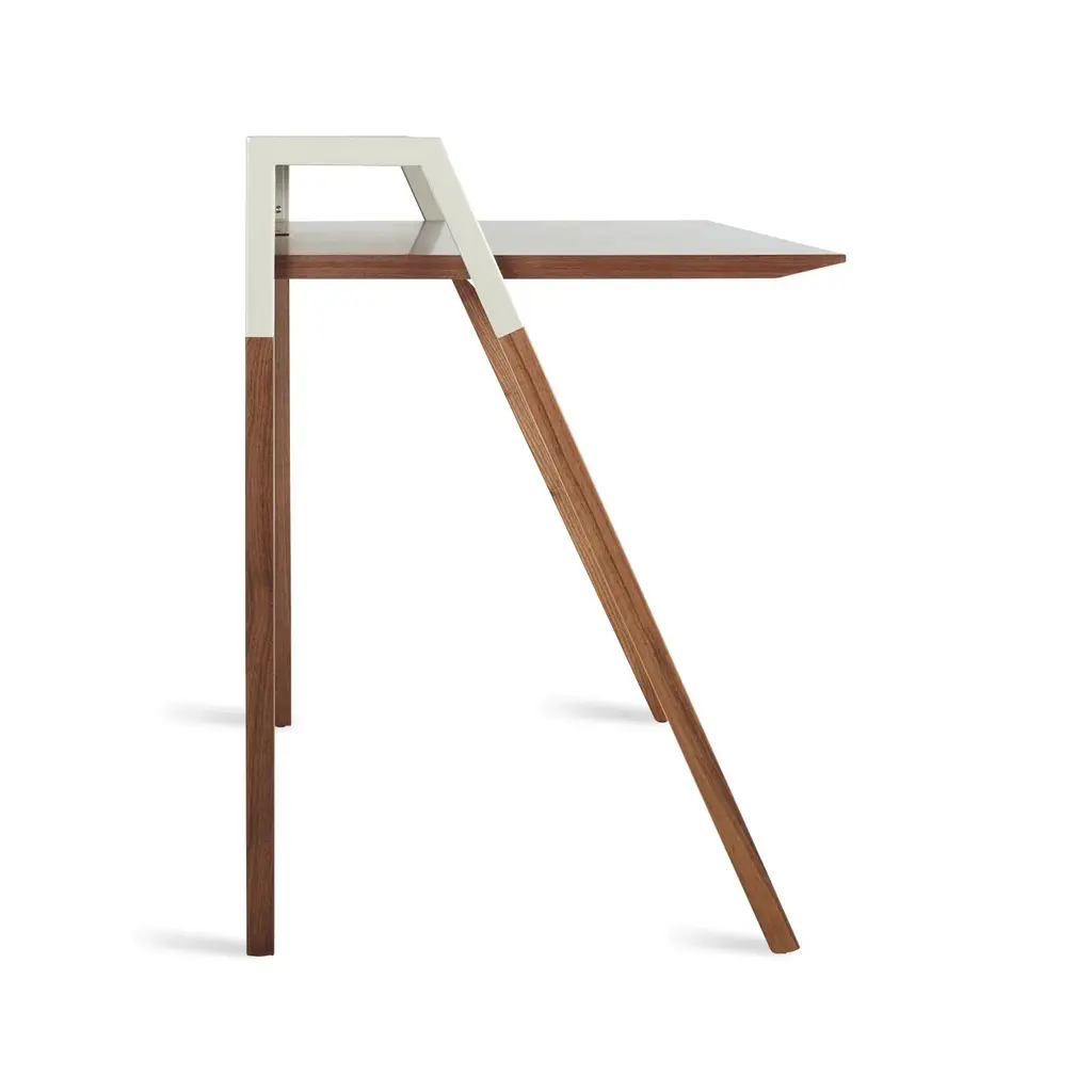 A simple and streamlined design ready to provide the perfect surface for a day of productive work, the Cant Desk from Blu Dot showcases a cantilevered silhouette in a multitude of finishes to effortlessly accent your interior decor. Crafted in a warm walnut or white ash veneer, this desk showcases a spacious, open work space and thin shelf for holding decor, desk organization and more. Ideal for smaller spaces, this desk looks perfect as part of an at-home office or out in the open as a workspace in a loft or studio. Highlights
