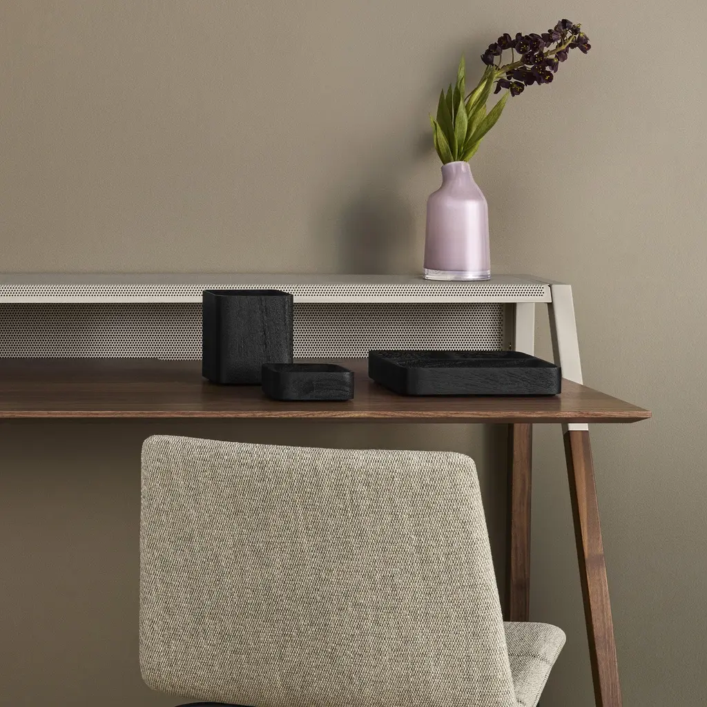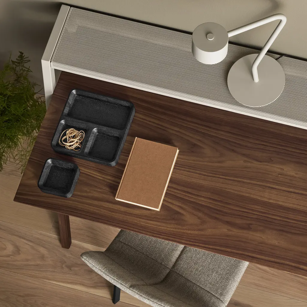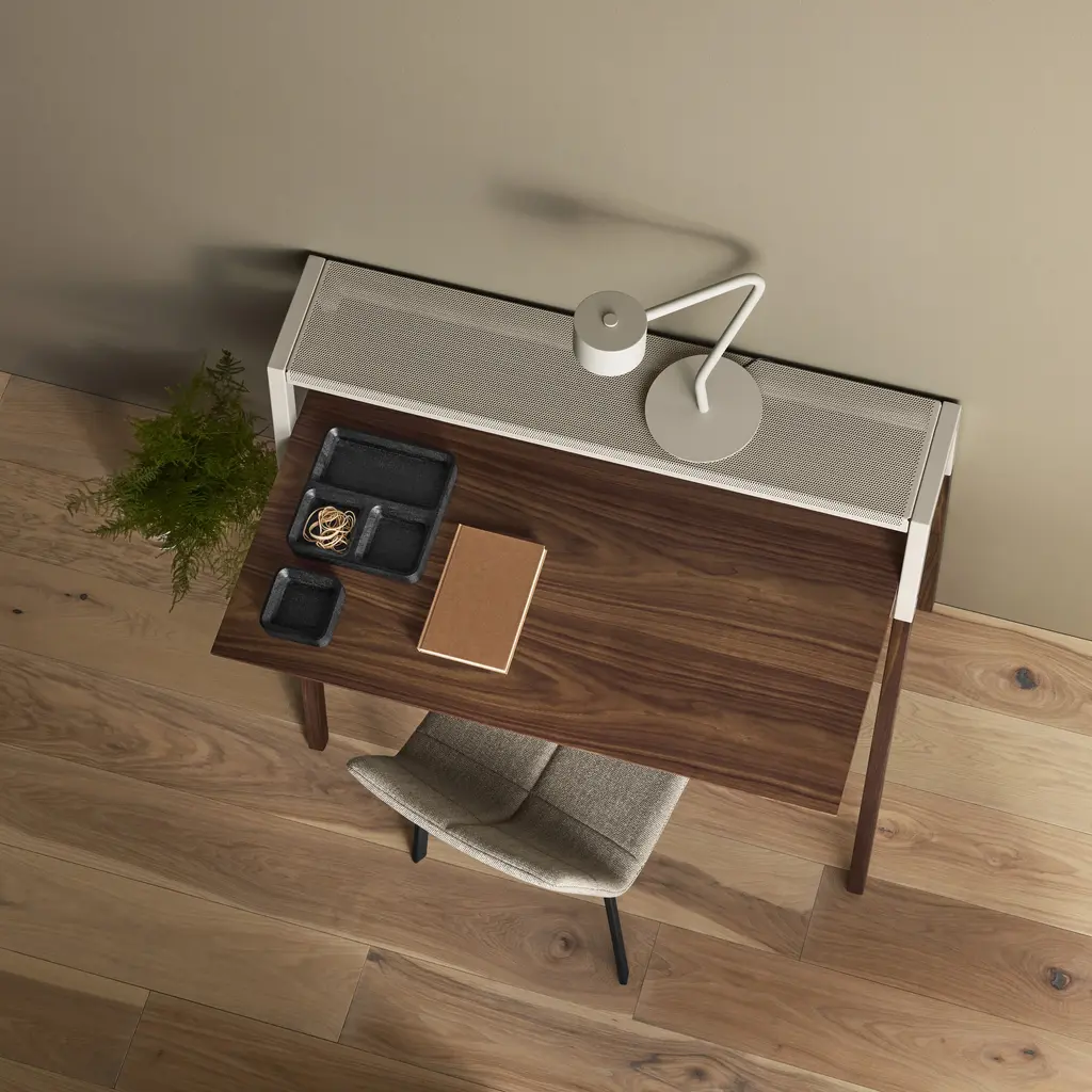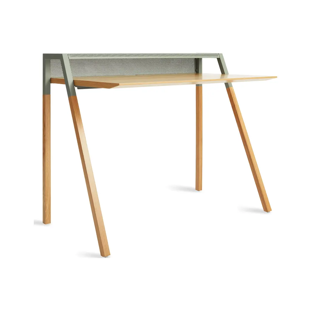 A simple and streamlined design ready to provide the perfect surface for a day of productive work, the Cant Desk from Blu Dot showcases a cantilevered silhouette in a multitude of finishes to effortlessly accent your interior decor. Crafted in a warm walnut or white ash veneer, this desk showcases a spacious, open work space and thin shelf for holding decor, desk organization and more. Ideal for smaller spaces, this desk looks perfect as part of an at-home office or out in the open as a workspace in a loft or studio. Highlights