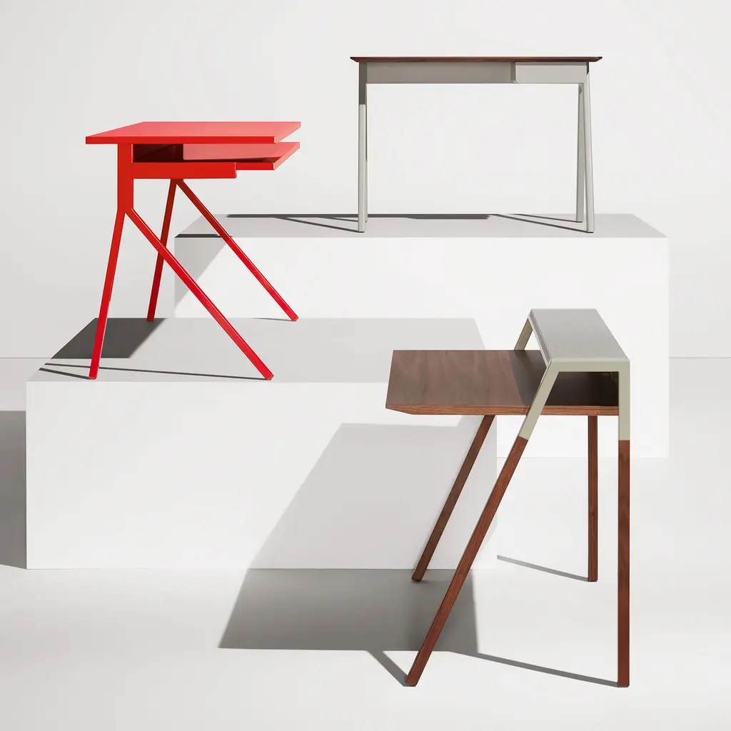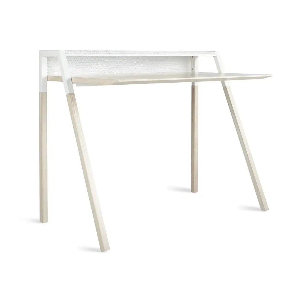 A simple and streamlined design ready to provide the perfect surface for a day of productive work, the Cant Desk from Blu Dot showcases a cantilevered silhouette in a multitude of finishes to effortlessly accent your interior decor. Crafted in a warm walnut or white ash veneer, this desk showcases a spacious, open work space and thin shelf for holding decor, desk organization and more. Ideal for smaller spaces, this desk looks perfect as part of an at-home office or out in the open as a workspace in a loft or studio. Highlights