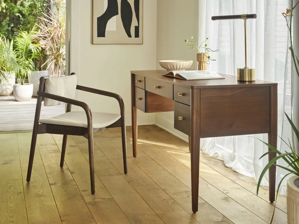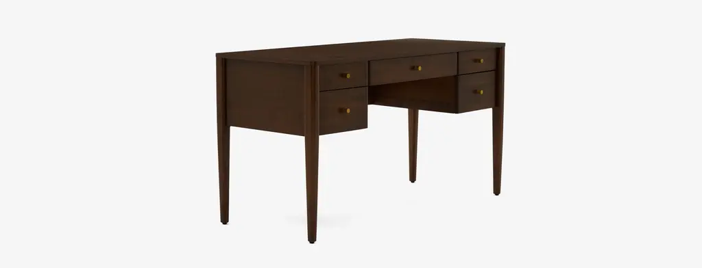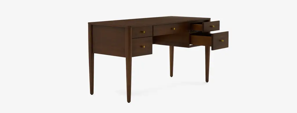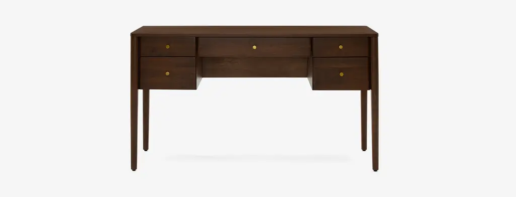 Bring some retro Mid-Century charm to your home office with the Carver Desk. With its five drawers keeping your workspace both stylish and organized has never been easier. The timeless style of the Carver allows it to seamlessly integrate into your home office, no matter your interior style. Plus, its spacious table top gives you an ample workspace for paperwork or your computer set up.