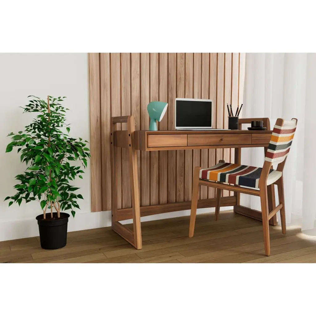 Work from home in style with our Casares desk. Whether studying, sending emails, or writing thank-you notes, this modern, minimalist desk provides the space and comfort needed to get things done. The Casares desk is handcrafted from sustainably sourced solid wood and features a middle drawer and two compartments for storage.