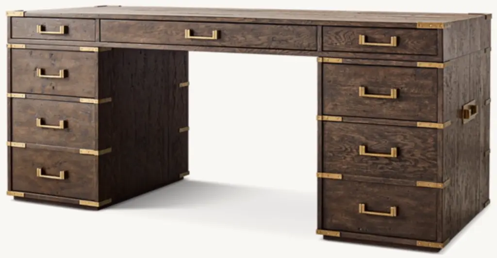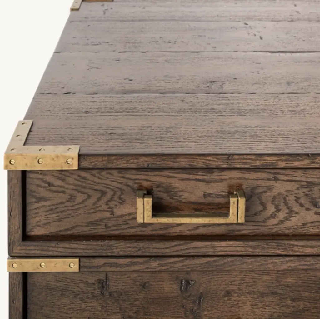European campaign furnishings of the 19th century inspired our collection by the Van Thiels, echoed in the simple strength of the shapes, the rustic grain of the solid American white oak and the hand-cast metal hardware with corner brackets that accent each piece. Subtle details including tapered legs lend refinement to the clean, forthright silhouettes.SHOP THE ENTIRE COLLECTION