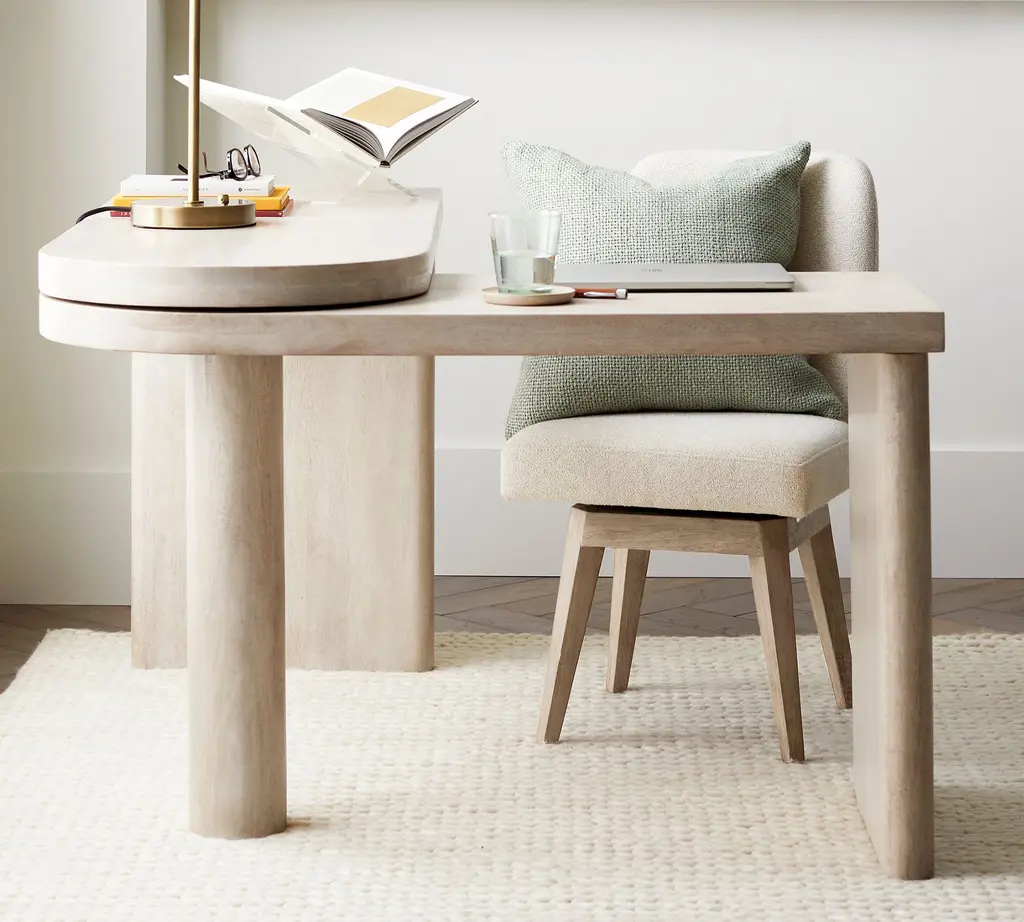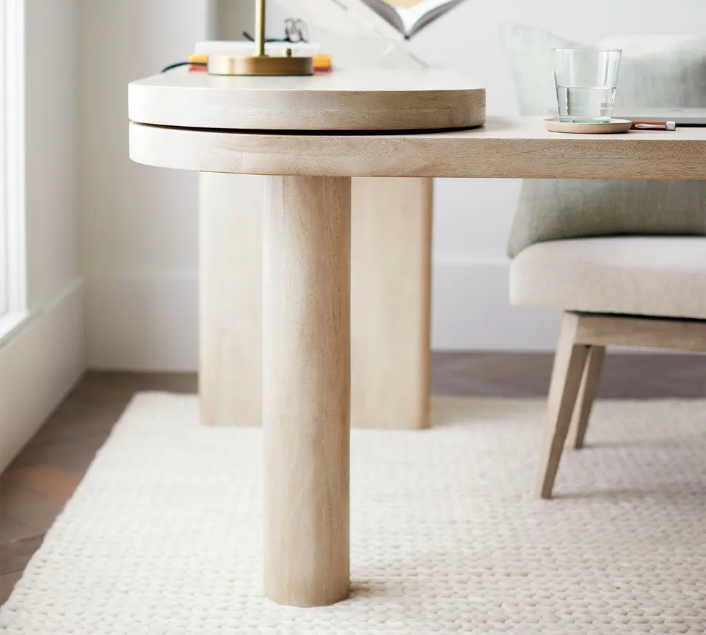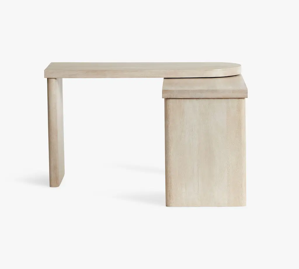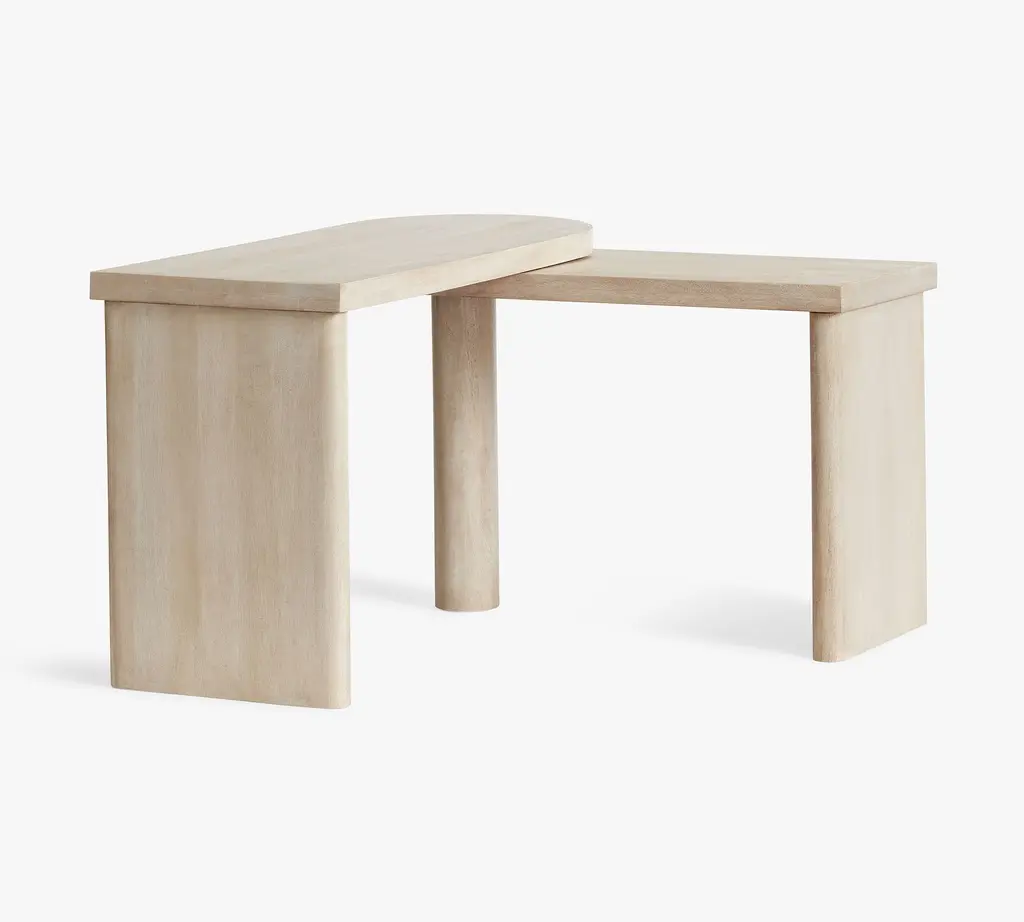A salute to minimalist design, our Cayman Collection has a timeless look that's warm and welcoming. Crafted of solid wood, each piece has a dimensional finish that adds character. Our take on the L-shaped desk features a cylindrical column that allows you to fan out (or fold in) your workspace.