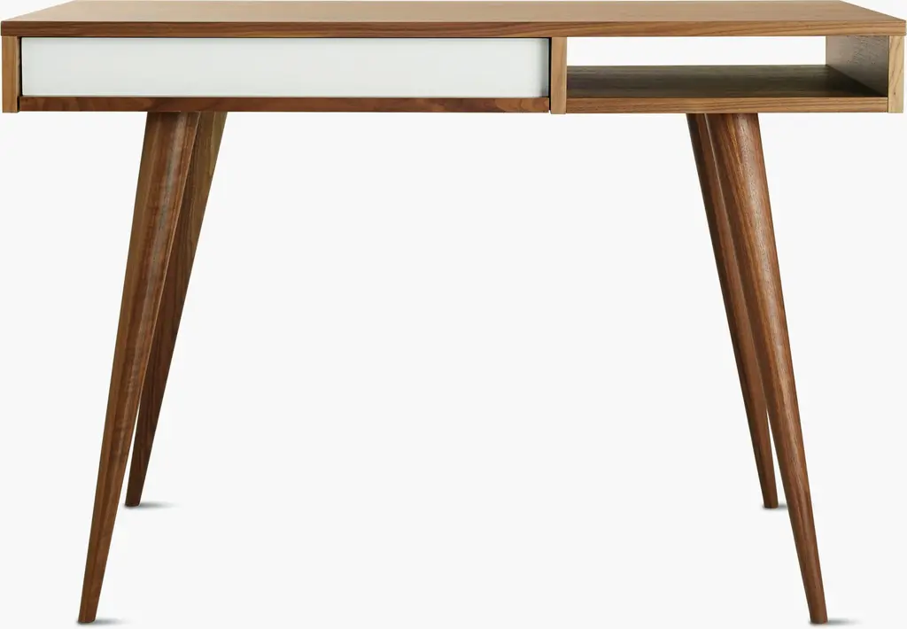 The simple forms of midcentury architecture inspired designer Nazanin Kamali's Celine Desk (2008), which is crafted with turned and tapered solid hardwood legs, a single-drawer desktop and an open cubby for documents and other essentials. As the founder of two start-ups, Kamali has worked on everything from restaurant design to art installations. With such an impressive resume, it's not surprising that her work has been recognized with a Good Design Award and two Design Plus awards. Made in Lithuania.