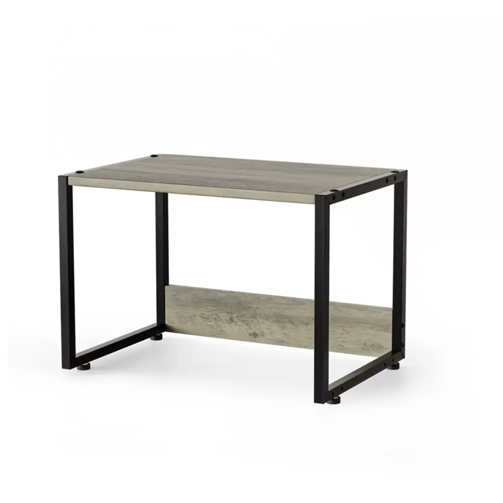 Maximize productivity with this expansive writing desk, boasting abundant surface area for work and writing endeavors. Equipped with two open shelves, including a lower one tailored for accommodating large computer boxes or equipment, and supported by a sturdy metal open base, it ensures convenient storage, easy access, stability, and durability, all while infusing a modern industrial flair into your workspace.