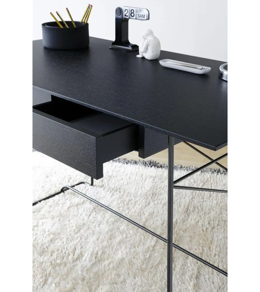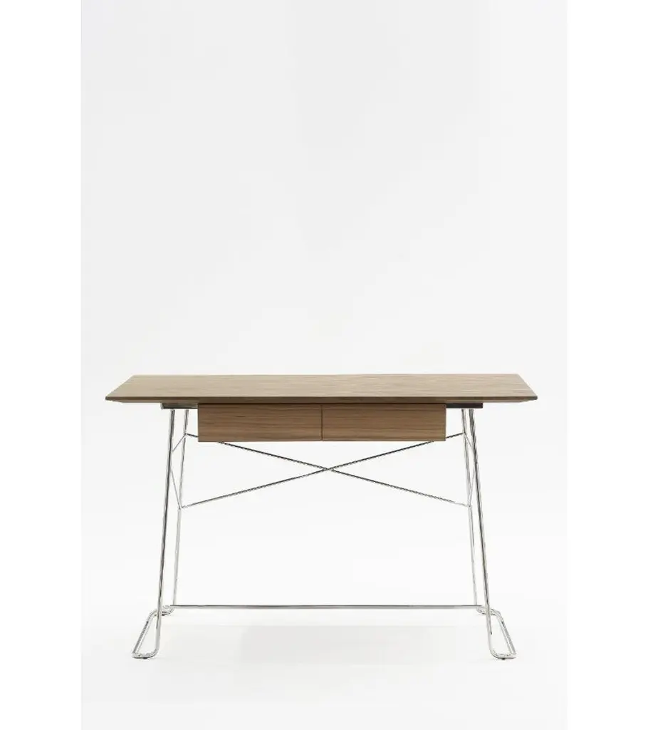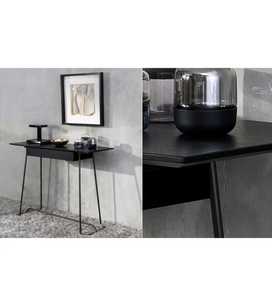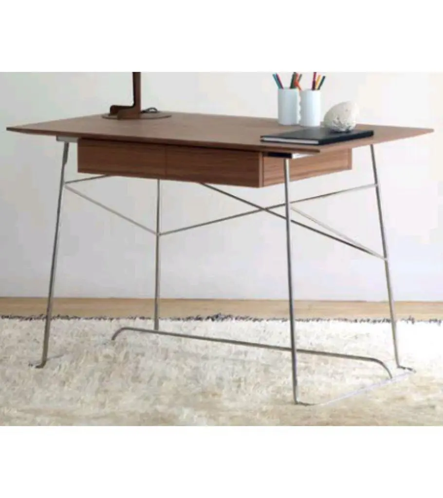 Wood brera desk by Marcos Zanuso JrMaterials: Chromed structure. Desk with drawer. Base in bronze lacquered metal or chromed metal Top in walnut veneer on medium or in black lacquered oak on mediumTechnique: Lacquered metal, natural or stained wood. Dimensions: D 65 x W 120 x H 77 cmAlso, available oak, stained ash, walnut, or black top finish, and bronze lacquered base.Marco Zanuso JR, the Italian designer, was one of the first creators of Coedition. In 2014, he designed the Brera line: desk, console, and bench in metal and varnished oak veneer.The Solferino bookcase, the Dom stools in natural solid oak or black varnished, are practical complementary pieces of furniture. “ In this collection, I sought to create visually light objects, not very fragile, well made, with a real concern for beautiful materials. The collection is made up of a desk, a console, and bench objects that fit in a discreet but original way in the home environment but also in public spaces. I looked for pure, simple lines, and as Vico Magistretti said: Making a simple object is the most complicated thing in the world ”Marco Zanuso Jr.COEDITION is a French publisher of high-end contemporary furniture created in 2014. Thanks to the diversity of the languages ??of its international designer's partners, COEDITION is an avant-garde brand, with the concern and the desire for sustainability. They are selected with great care. Among other things, solid woods and veneers are, depending on their origins and terms of supply. Our manufacture is only made in Italy, with the best craftsmen in the profession, committed to quality and the environment.Today 13 great designers are creating exclusive collections for COEDITION: Patricia Urquiola, Patrick Jouin, Luca Nichetto, Rodolfo Dordoni, Shin Azumi ”, Michael Anastassiades, Olivier Gagnère, Dominique Perrault and Gaelle Lauriot Prévost, Marco Zanuso Jr., Arnaud and Aki Cooren, and finally Alain Moatti.Our catalog offers furniture for the home, public places, reception areas, restaurants, hotels. Our raw materials are carefully selected, solid woods and veneers, according to their origins.Marco Zanuso Jr was born in Milan, where he lives and works. A graduate in architecture in Florence, he is the author of an experimental thesis on radical architecture and its main personalities: Superstudio, Michele De Lucchi, Andrea Branzi, Ufo, Mendini ed Ettore Sottsass. In Milan, his studio, created with Daniel Nava, deals with the design of products, architecture of residential buildings, interior offices, private houses, and exhibitions. Some of its clients are Carrefour, Abet Laminati, Mondadori e Triennale di Milano.As a designer, he collaborates with various publishers, including Memphis, Driade, Bonacina, Fontana Arte, Cappellini, De Padova as well as with galleries such as the Design Gallery in Milan and the Galerie Italienne in Paris. He also develops projects with small producers and artisans.